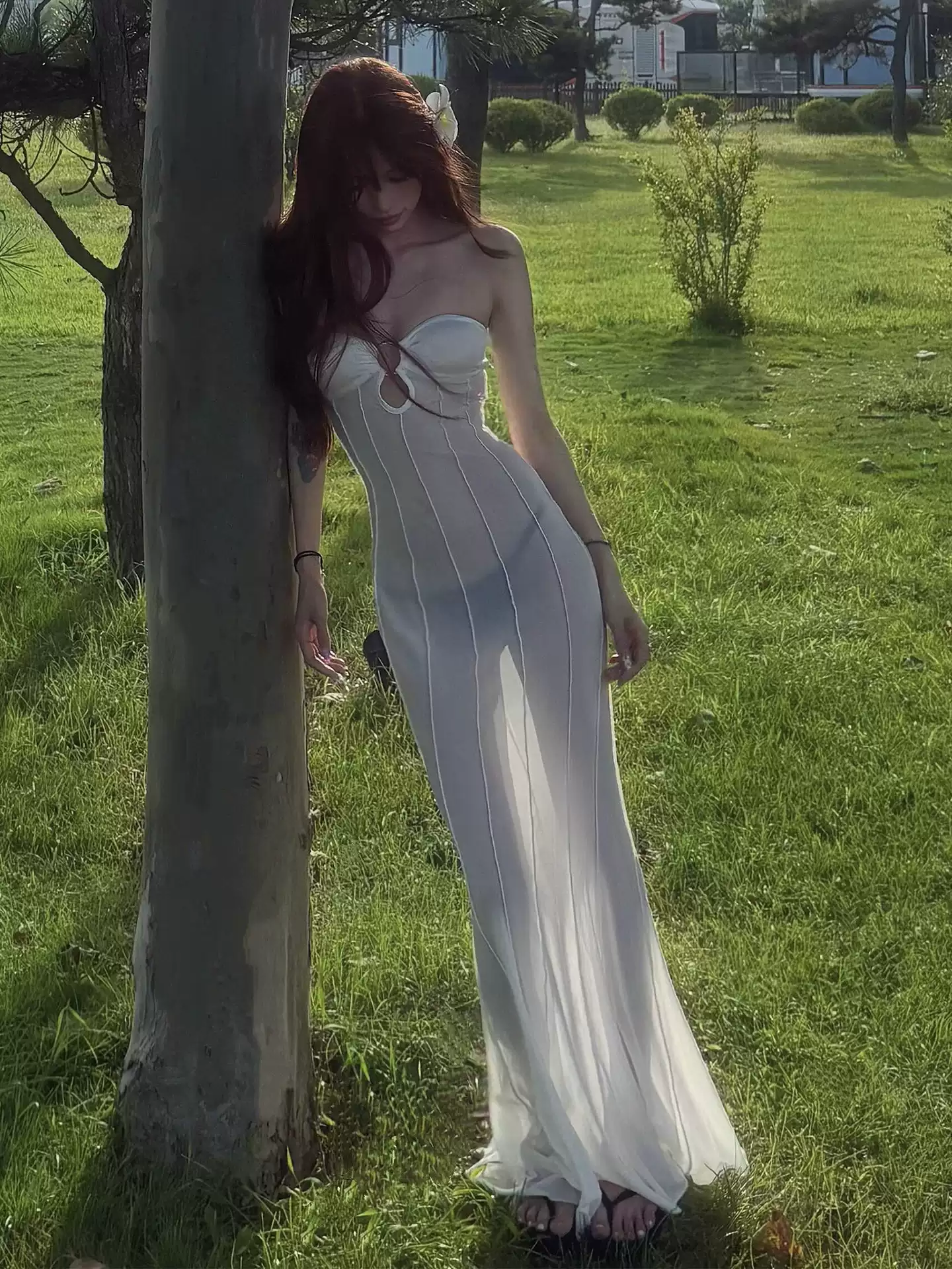Sheer Bandeau Fishtail Long Dress - Beach Resort Hollow Out Bodycon for Women