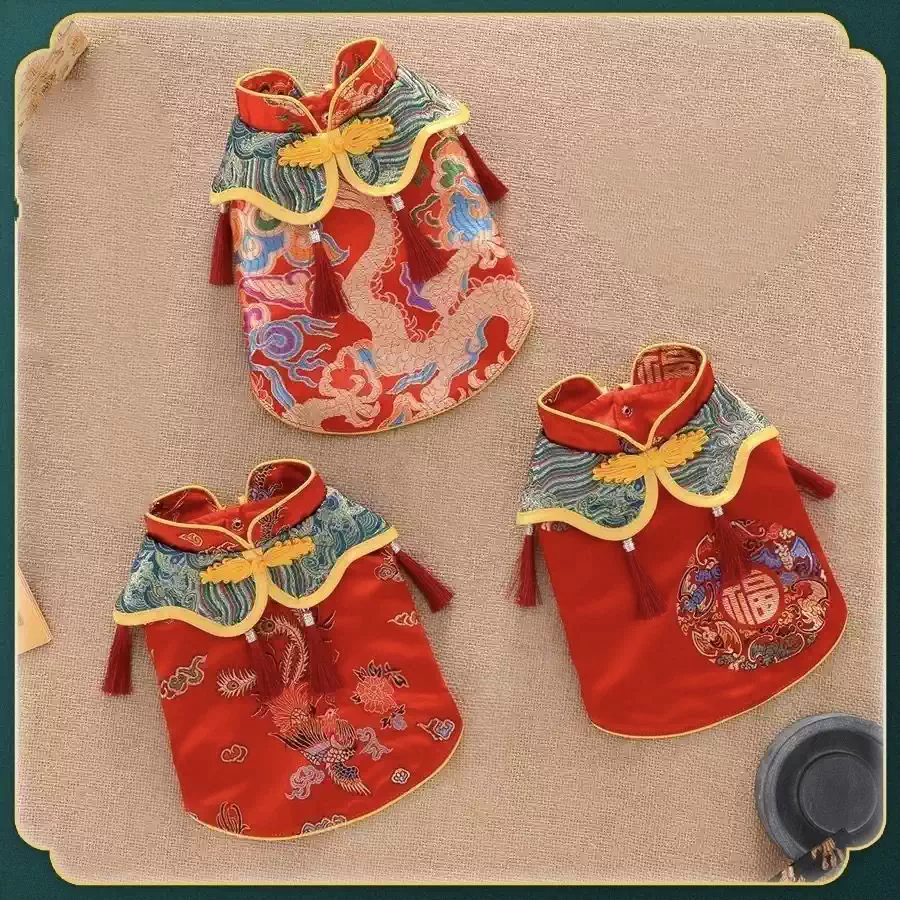 New Chinese Style Pet Outfit - Festive Dog Clothes for Spring Festival & Weddings