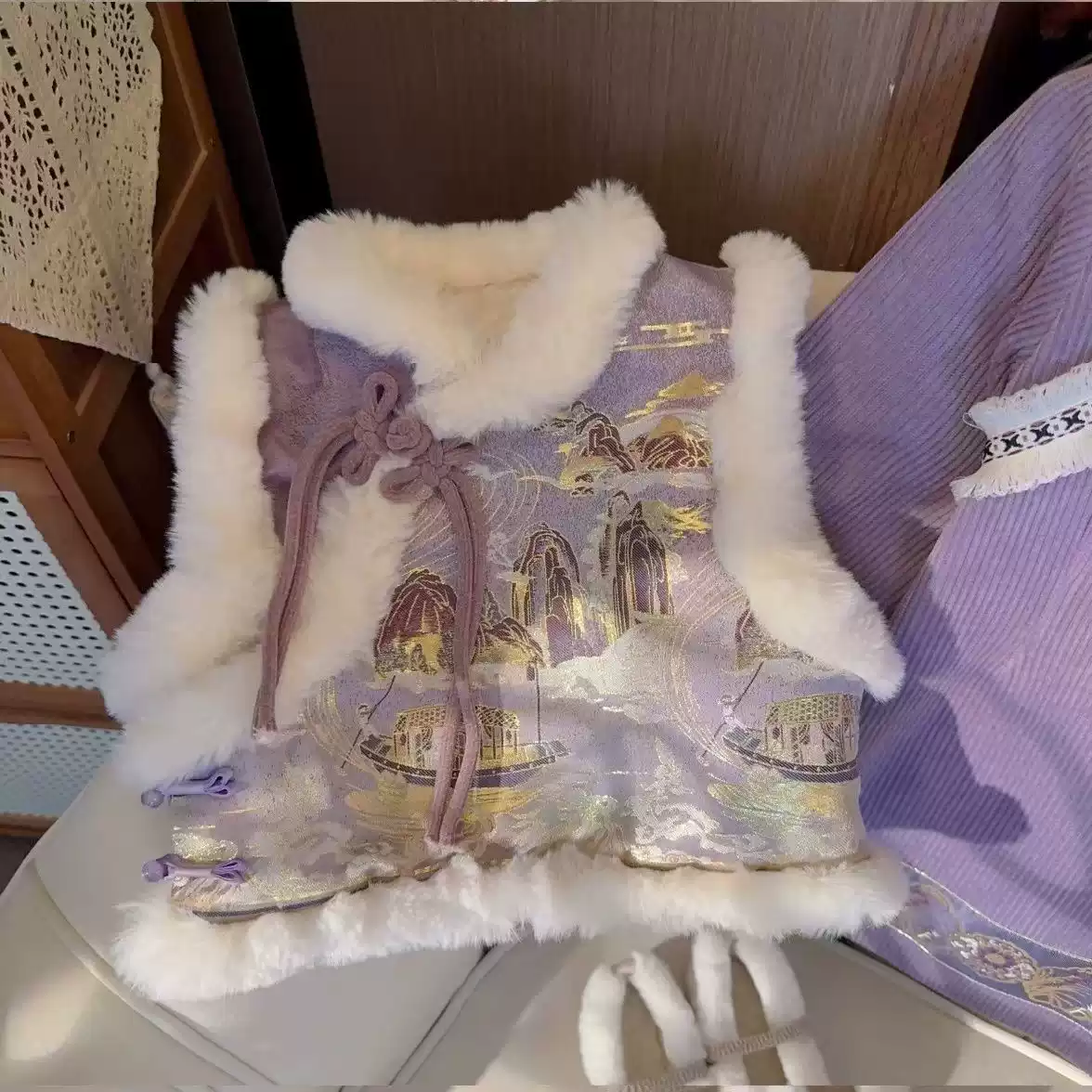 Winter Warm Dog Cotton Coat - Chinese Style with Fur Collar (Anti-Shedding, Suitable for Small Breeds)