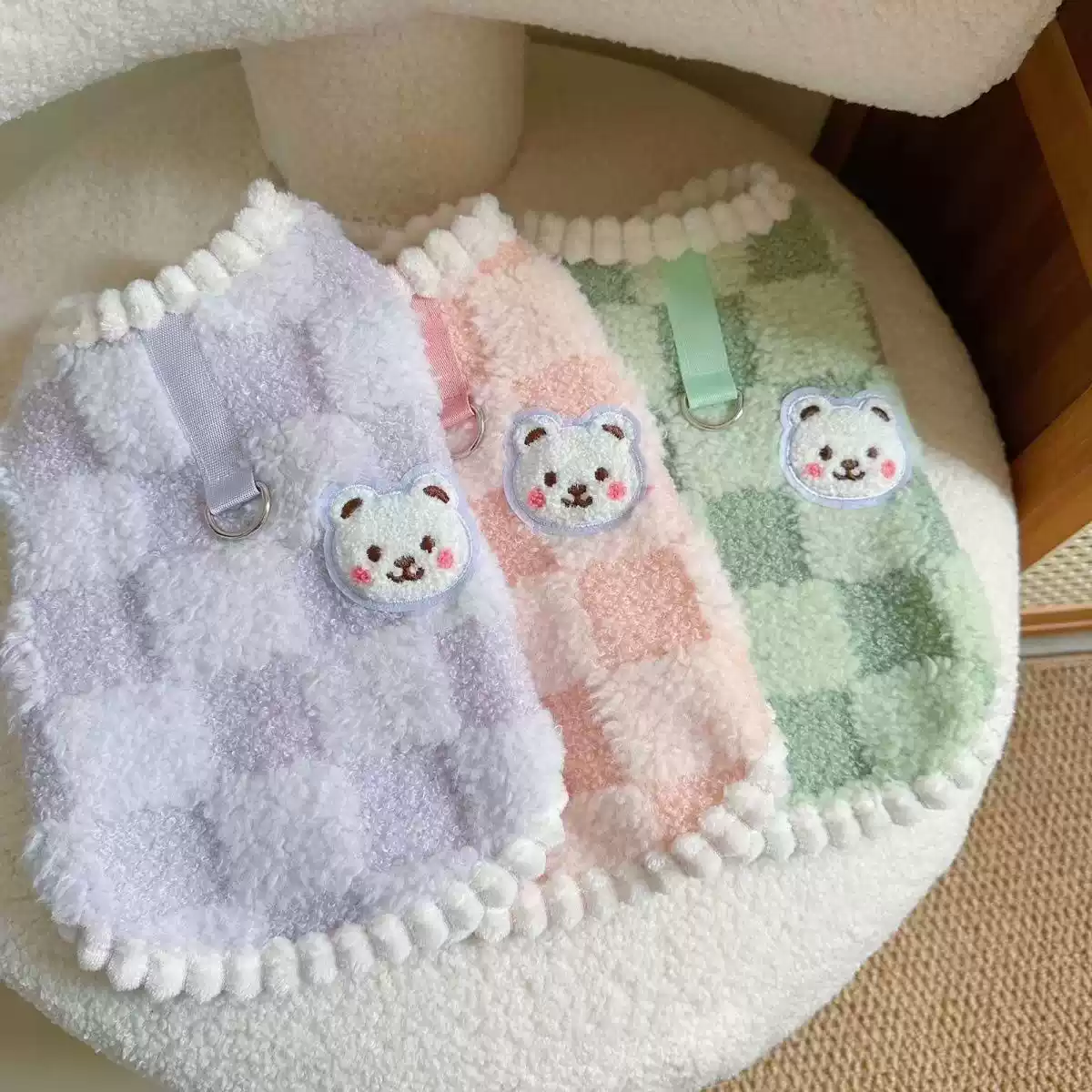 Pet Fleece Vest Warm Thick Autumn Winter Checkered Sleeveless Jacket for Dogs & Cats