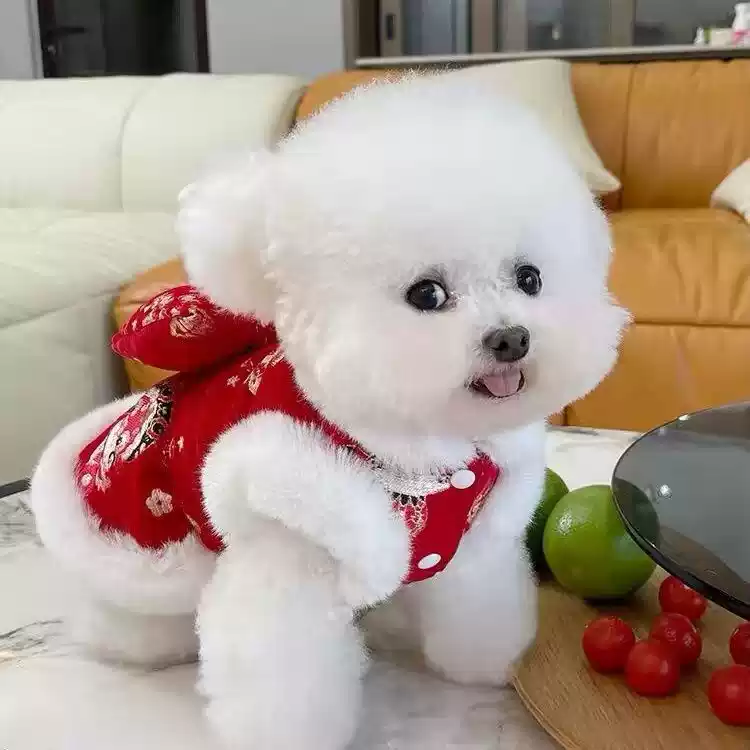 Fleece-Lined Autumn & Winter New Year Tang-Style Dress for Dogs & Cats
