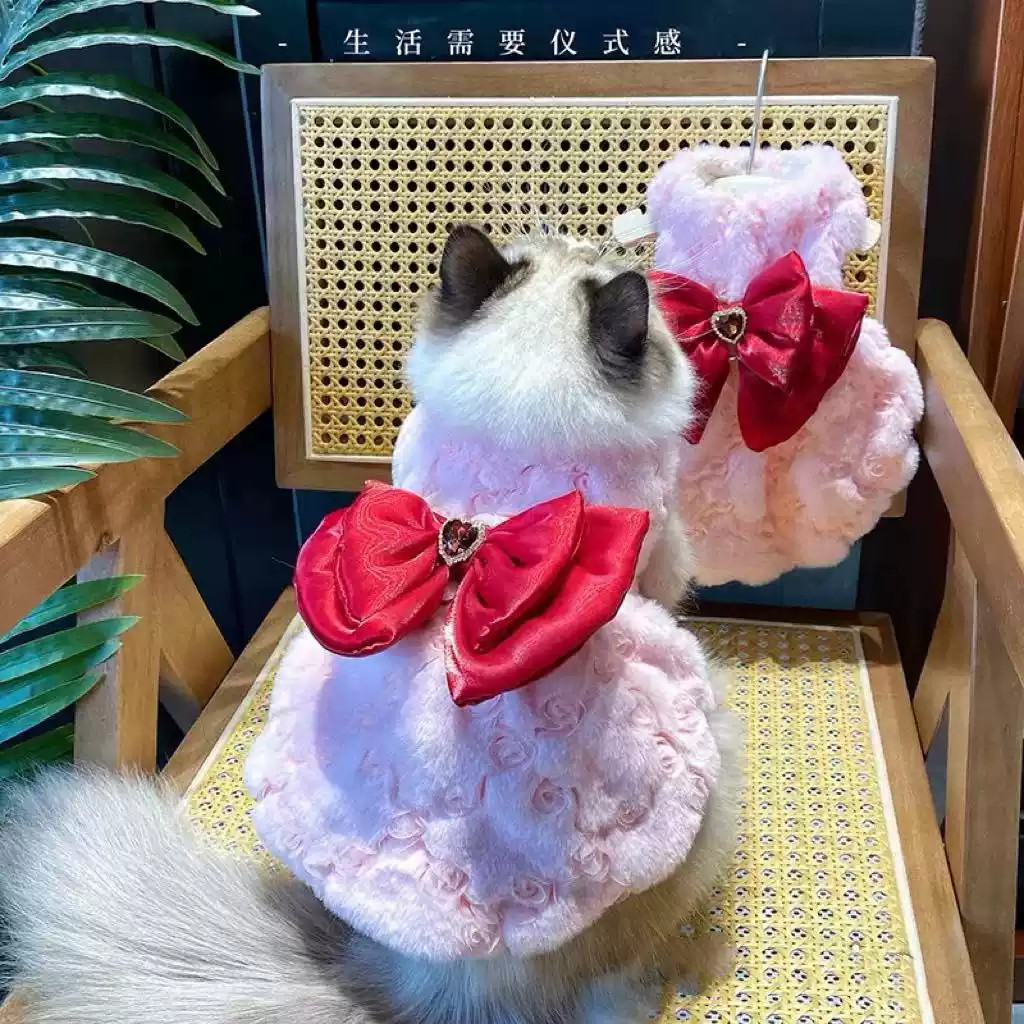 New Pet Fashion Bowknot Warm Skirt with Rabbit Fur for Dogs & Cats, Autumn/Winter