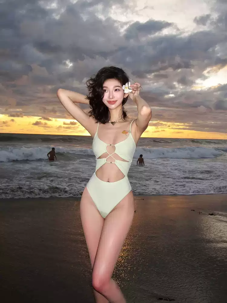 Women's One-Piece Knit Hollow Swimsuit - Beach & Hot Spring Swimwear