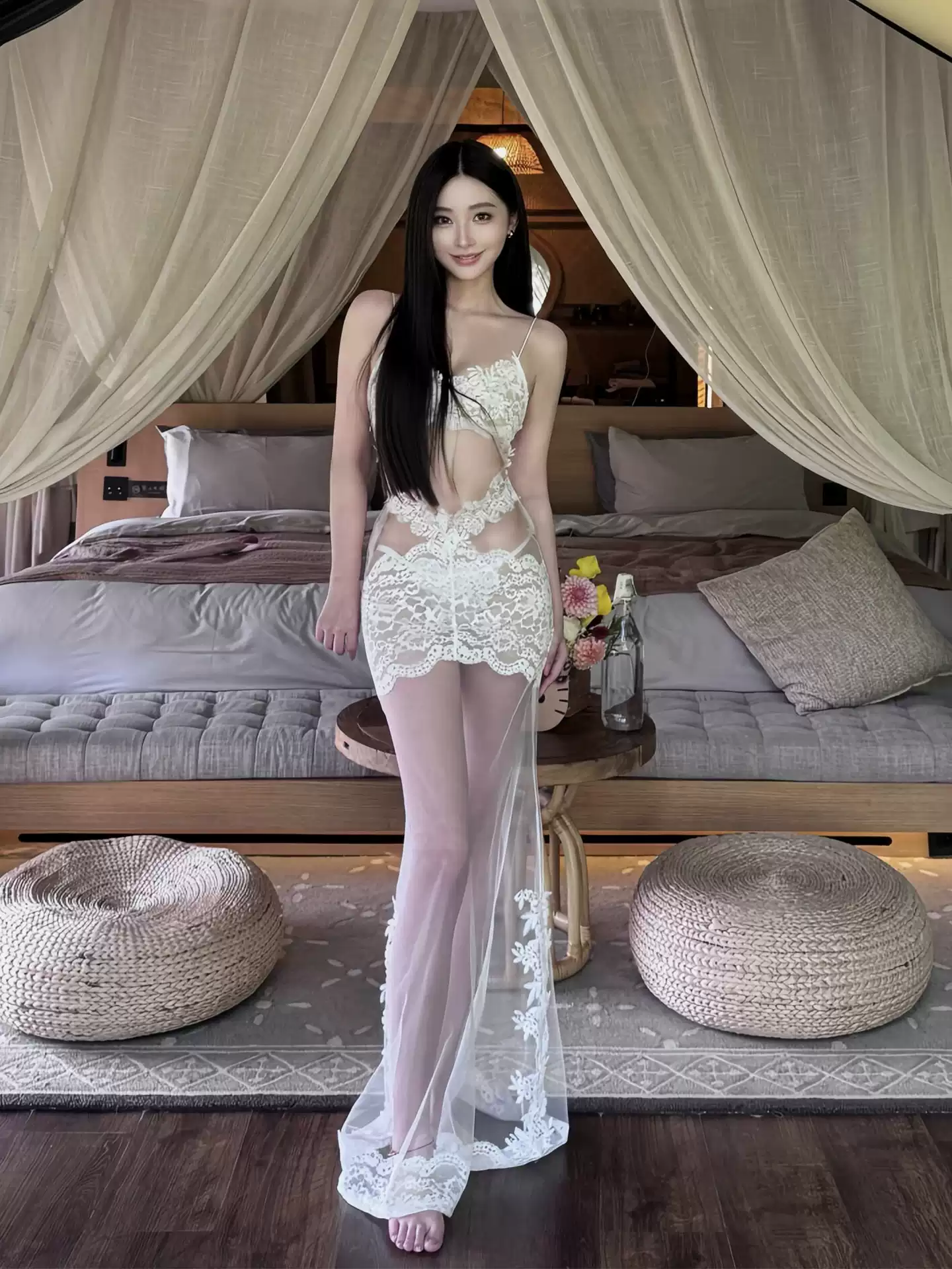 Women's Sheer High-Grade Lace Long Dress Bikini Swimsuit - Honeymoon/Vacation Style