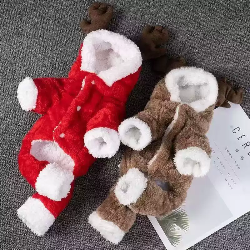 Pet Cat & Dog Four-Legged Fleece-Lined Winter/Autumn Warm New Year Outfit