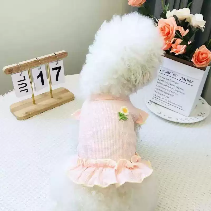 Spring/Summer Pet Dress - Waffle Pattern with Flowers & Flutter Sleeves