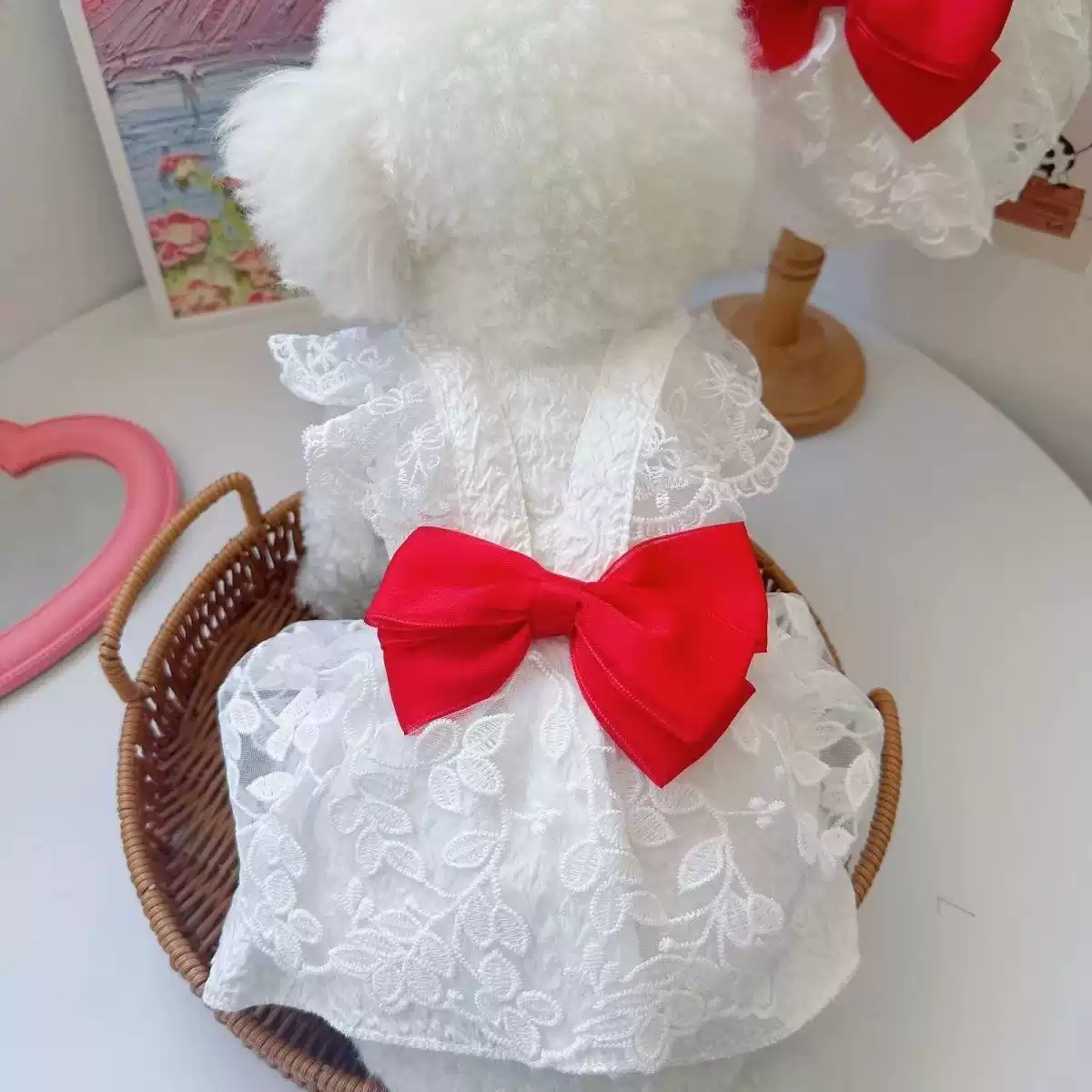 New Spring/Summer Pet Wedding Style Bow Lace Dress for Dogs & Cats
