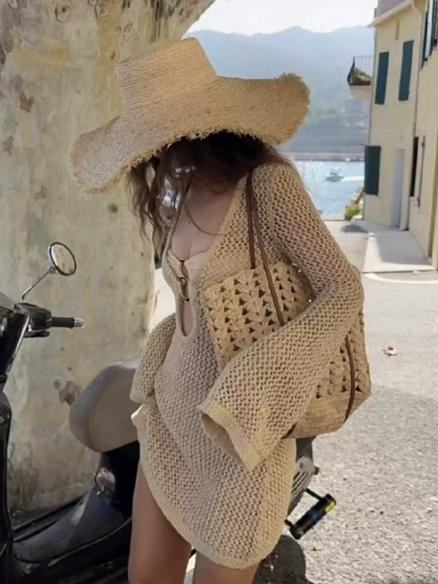 French Elegant Old Money Style Knit Cover-Up Bikini Three-Piece Set for Vacation & Hot Springs