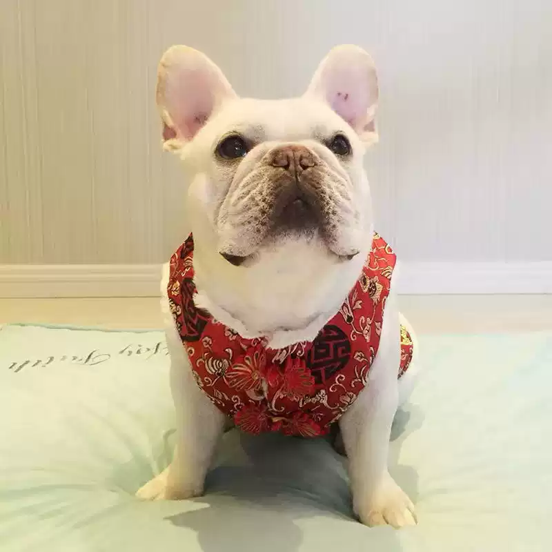 French Bulldog & Pug Winter Autumn New Year Thickened Red Tang Suit Style Cotton Fleece Vest for Dogs
