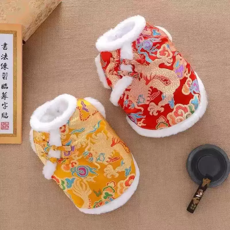 Dog & Cat Festive Tang Suit - Winter Warm Thickened Outfit for New Year, Weddings, Visits