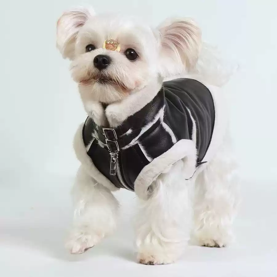 Winter Thickened Faux Fur Leather-Style Jacket for Small Dogs & Cats