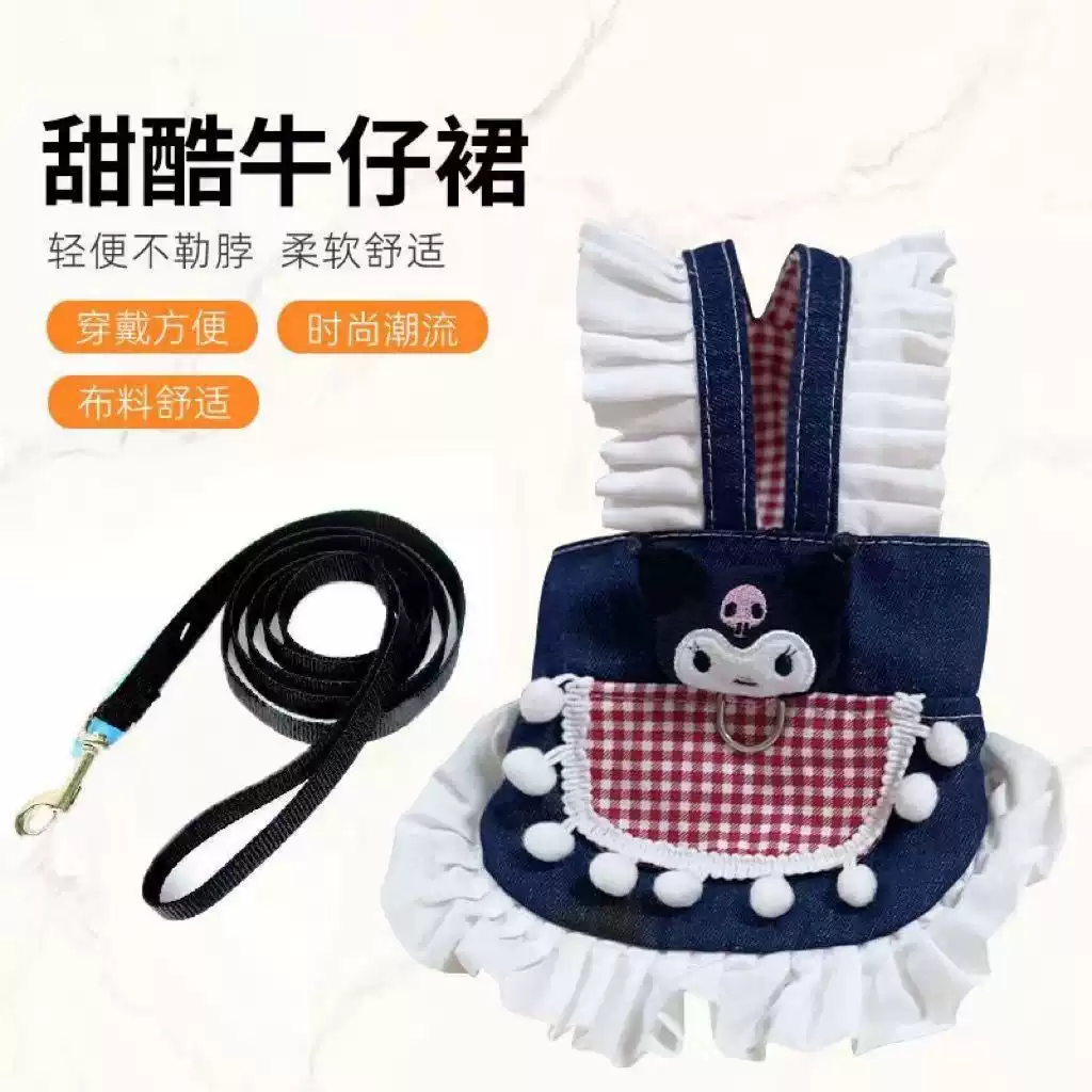 Stylish Denim Skirt Pet Harness & Leash Set for Dogs & Cats