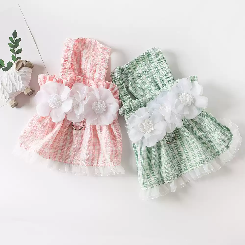 Pet Clothing New Spring/Summer Plaid Leash Clip Sling Dress for Dogs & Cats (Teddy, Bichon) Lightweight Outdoor