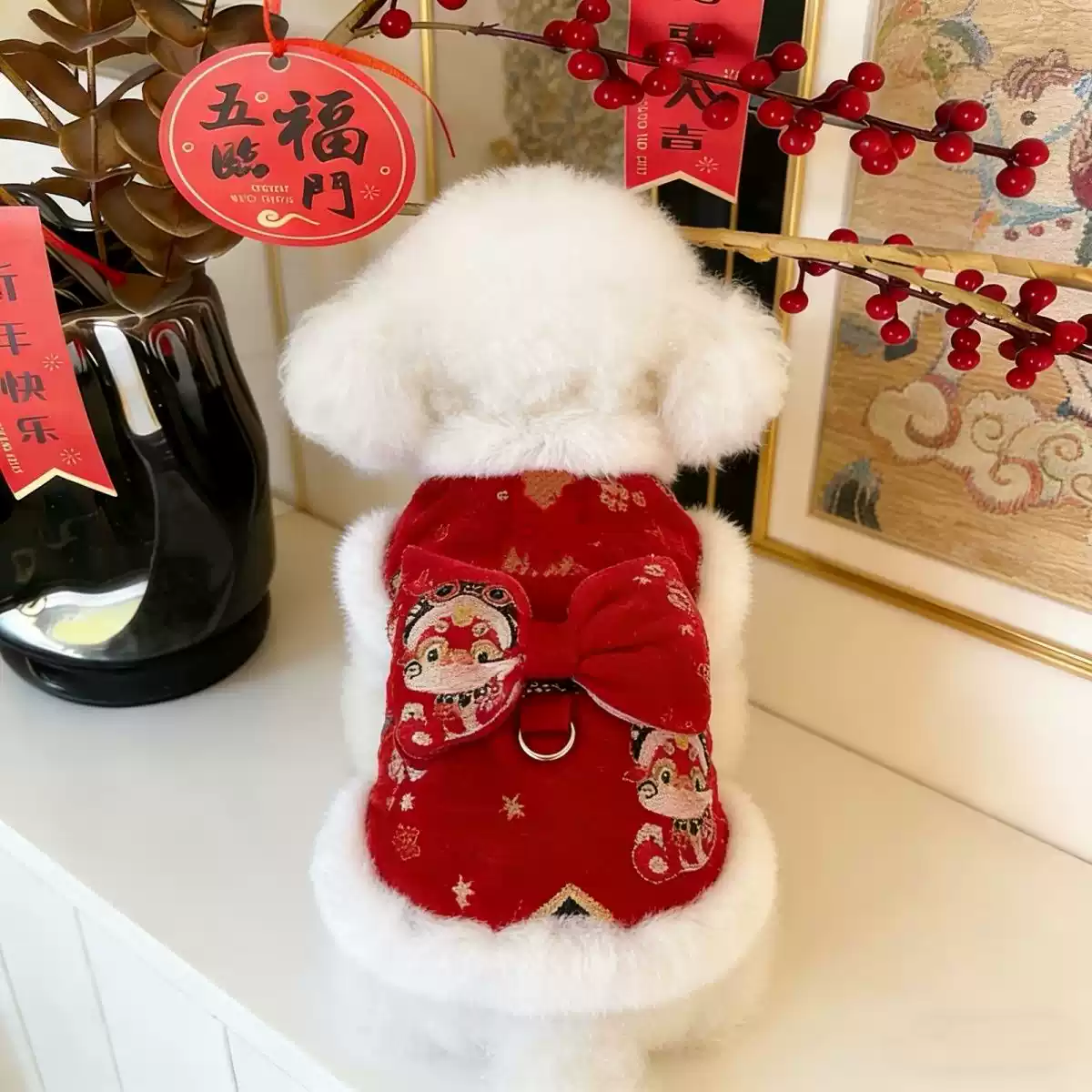 Festive New Year Tang-Style Winter Warm Dog Outfit for Small Dogs
