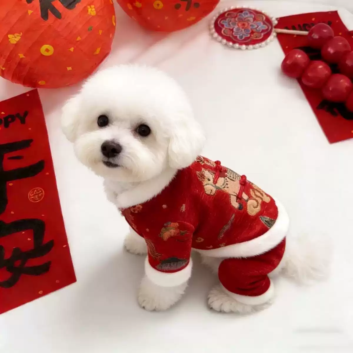 Chinese New Year Pet Tang Suit, Festive Outfit for Small Dogs & Cats (Year of the Horse)