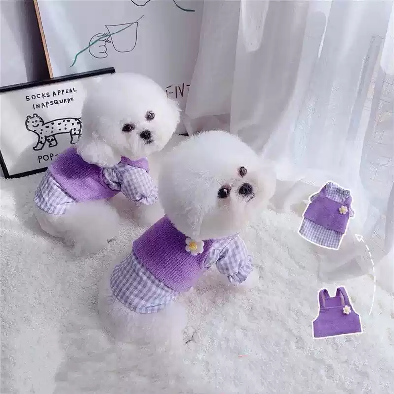Korean-Style Purple Sweater Vest for Dogs, Plaid Shirt for All Seasons