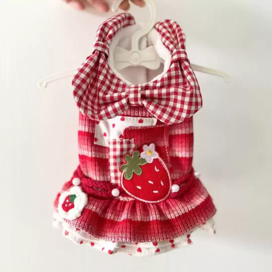 Pet Cat & Dog Autumn Winter New Thin Fleece Strawberry Dress