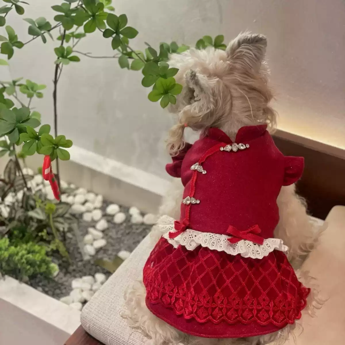 Pet Clothes Autumn Winter New Festive Warm New Year Dress for Dogs & Cats