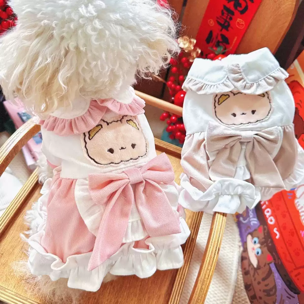 Cute Princess Bow Double-Layer Winter Dress for Small Dogs & Cats (Autumn/Winter Warm Thick)