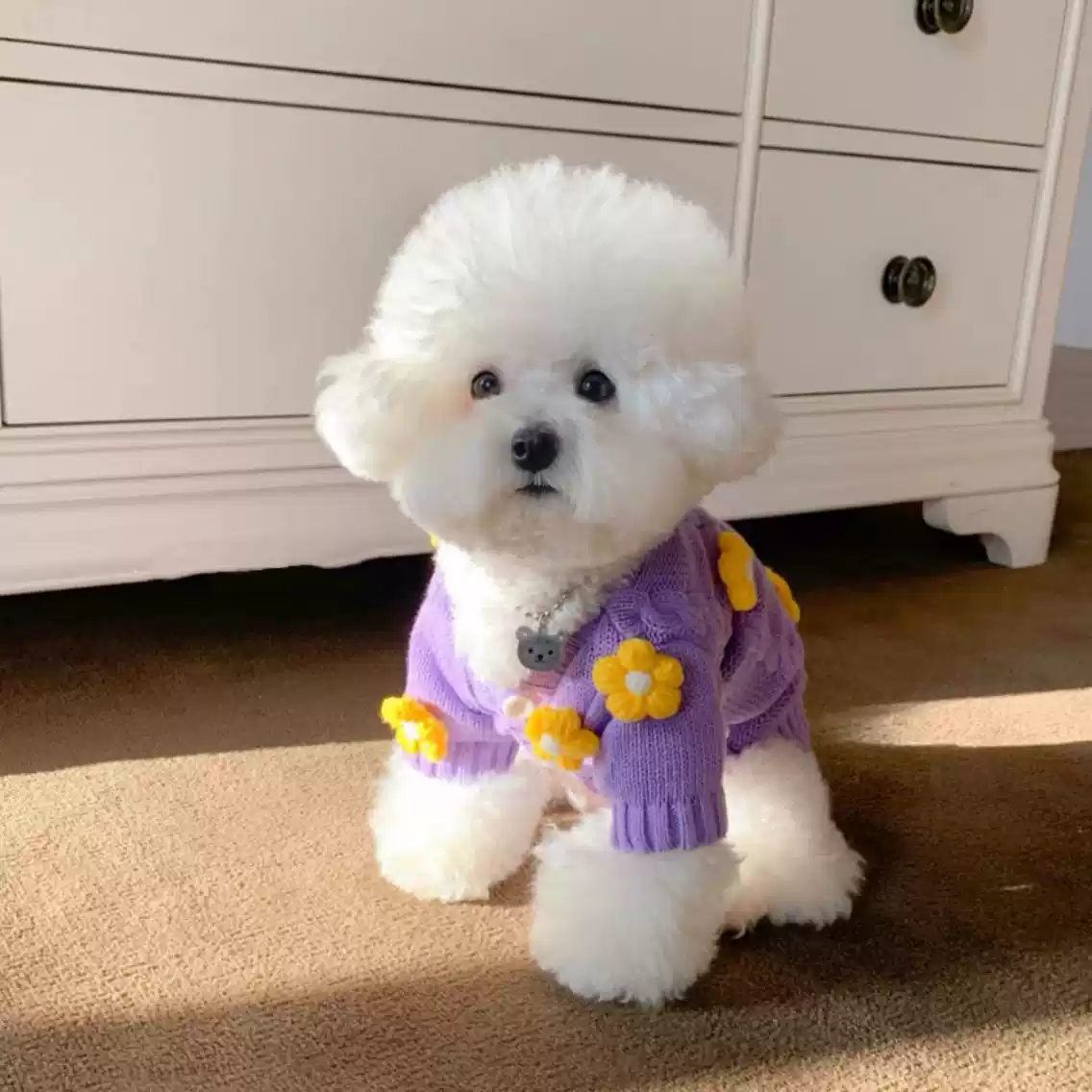 Cute Purple Knit Sweater Cardigan with Flower for Small Dogs & Cats - Autumn/Winter