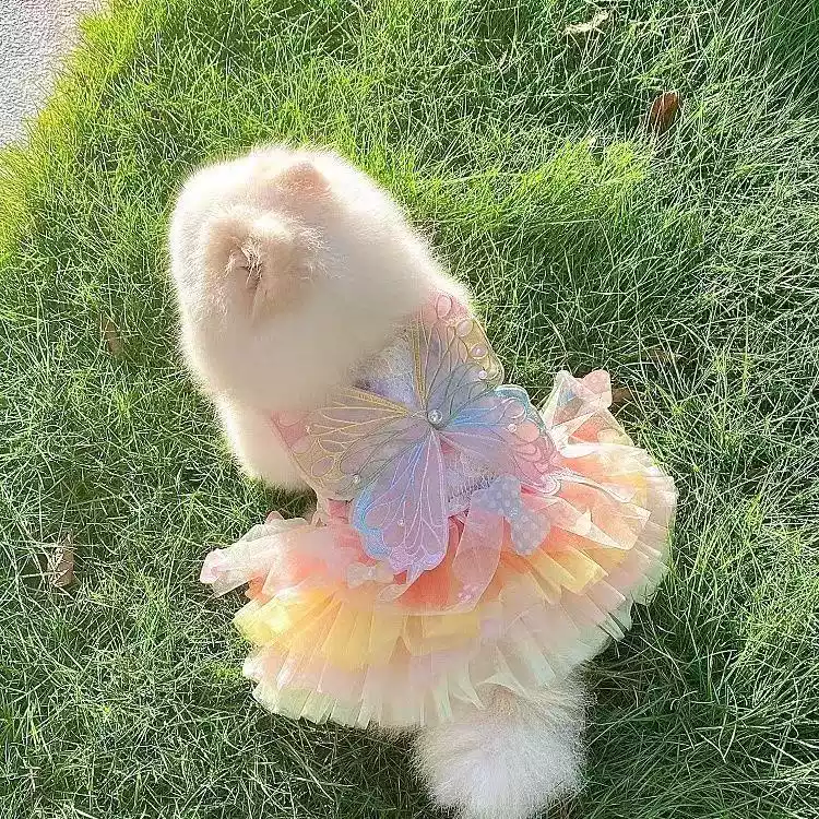 Pet Small/Medium Dog & Cat Fairy Tulle Dress with Butterfly Wings, Rainbow