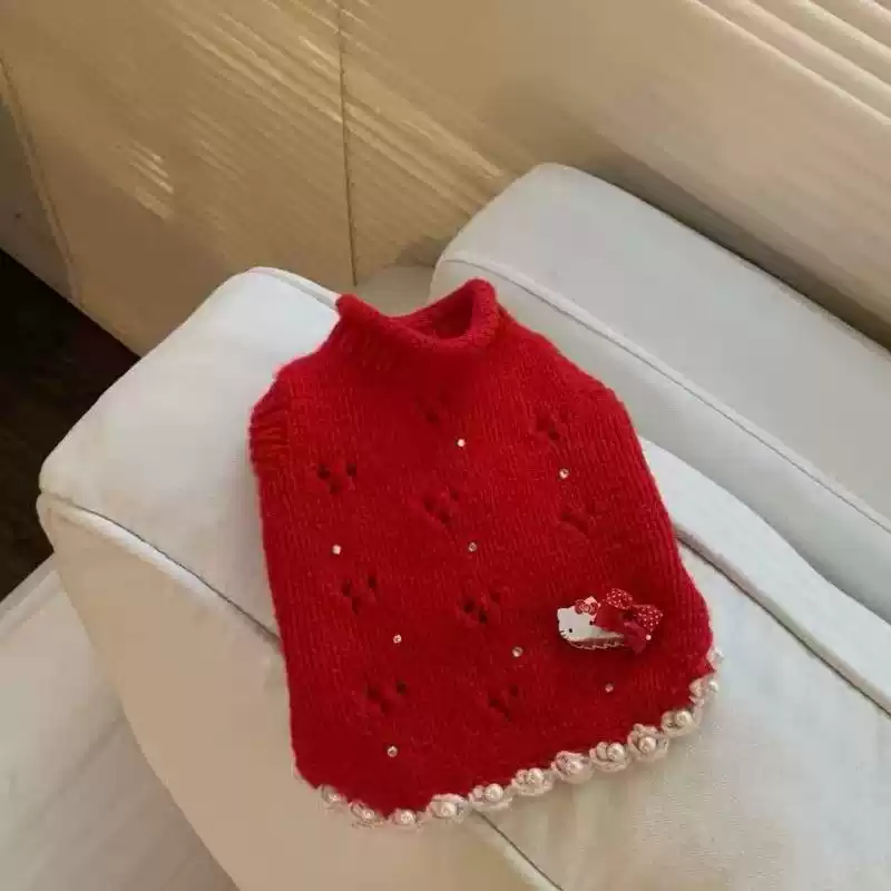Pet New Year Hand-Knit Mink Wool Red Dog Sweater - Warm