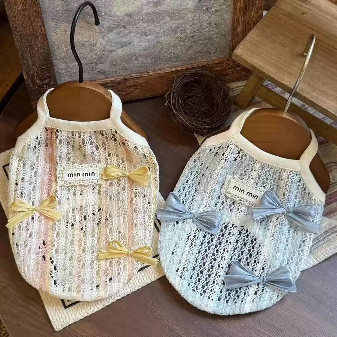 Summer New Thin Bowknot Hollowed-out Lace Pet Cami Vest - Breathable for Cats & Small Dogs