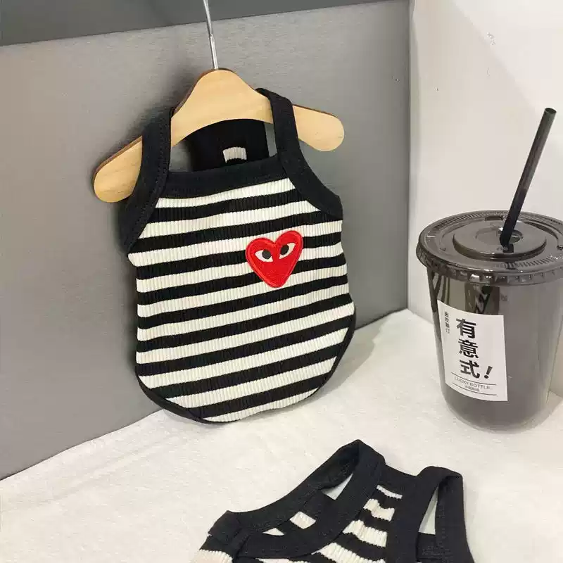 Small Dog & Cat Black & White Striped Summer Thin Pet Tank Top