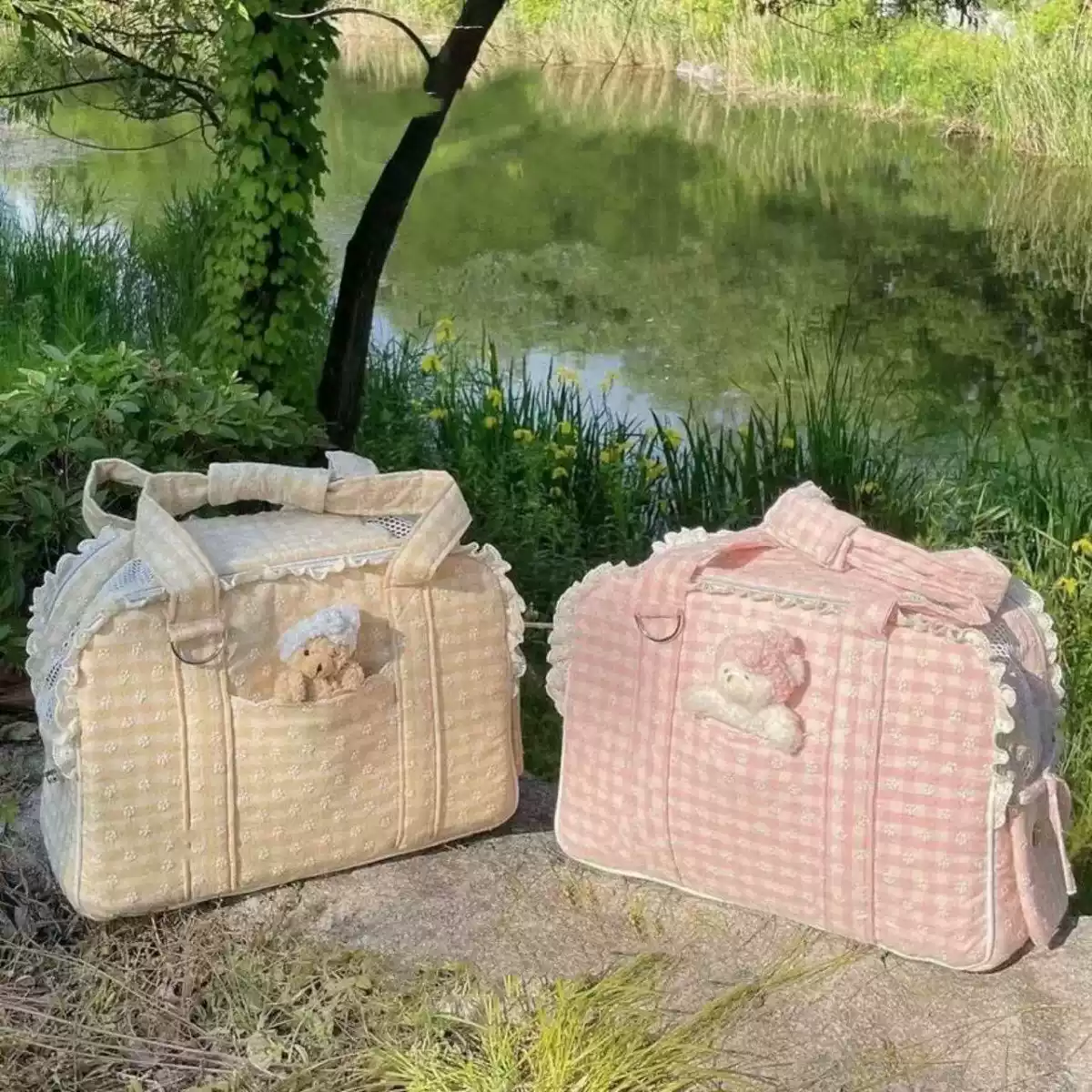 Portable Pet Carrier for Cats & Dogs - Breathable Handbag/Shoulder Bag with Lace Design