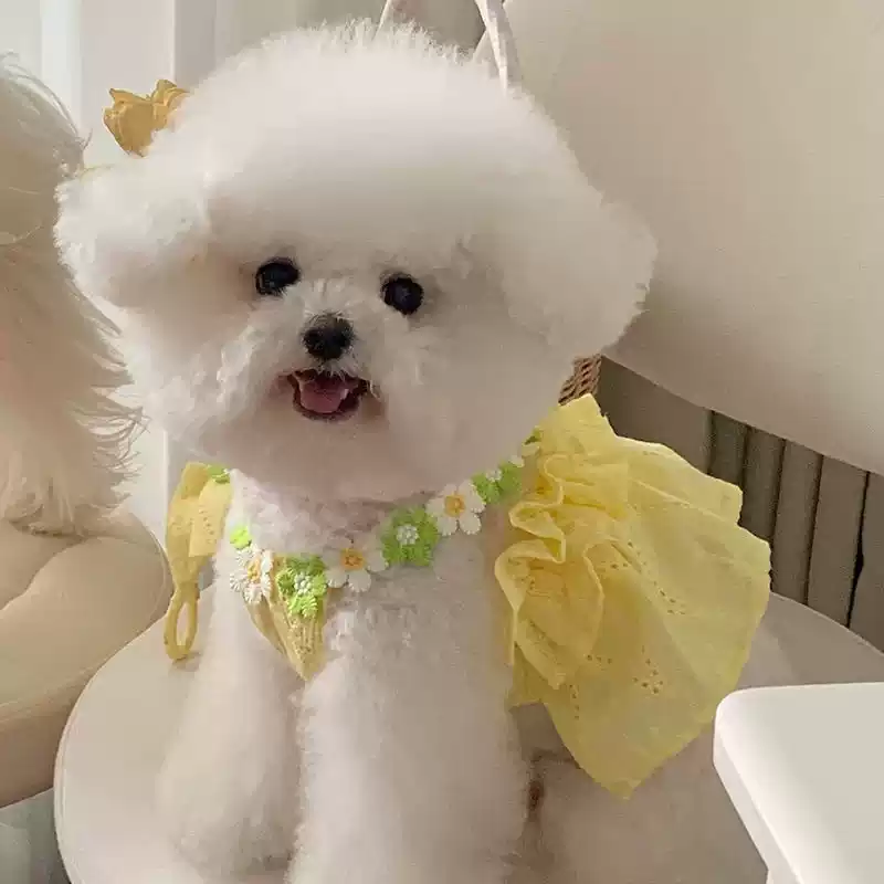 Pet Clothes Spring/Summer/Autumn Thin Korean Style Flower Suspender Dress with Jacquard Embroidery, Sweet and Bright for Summer