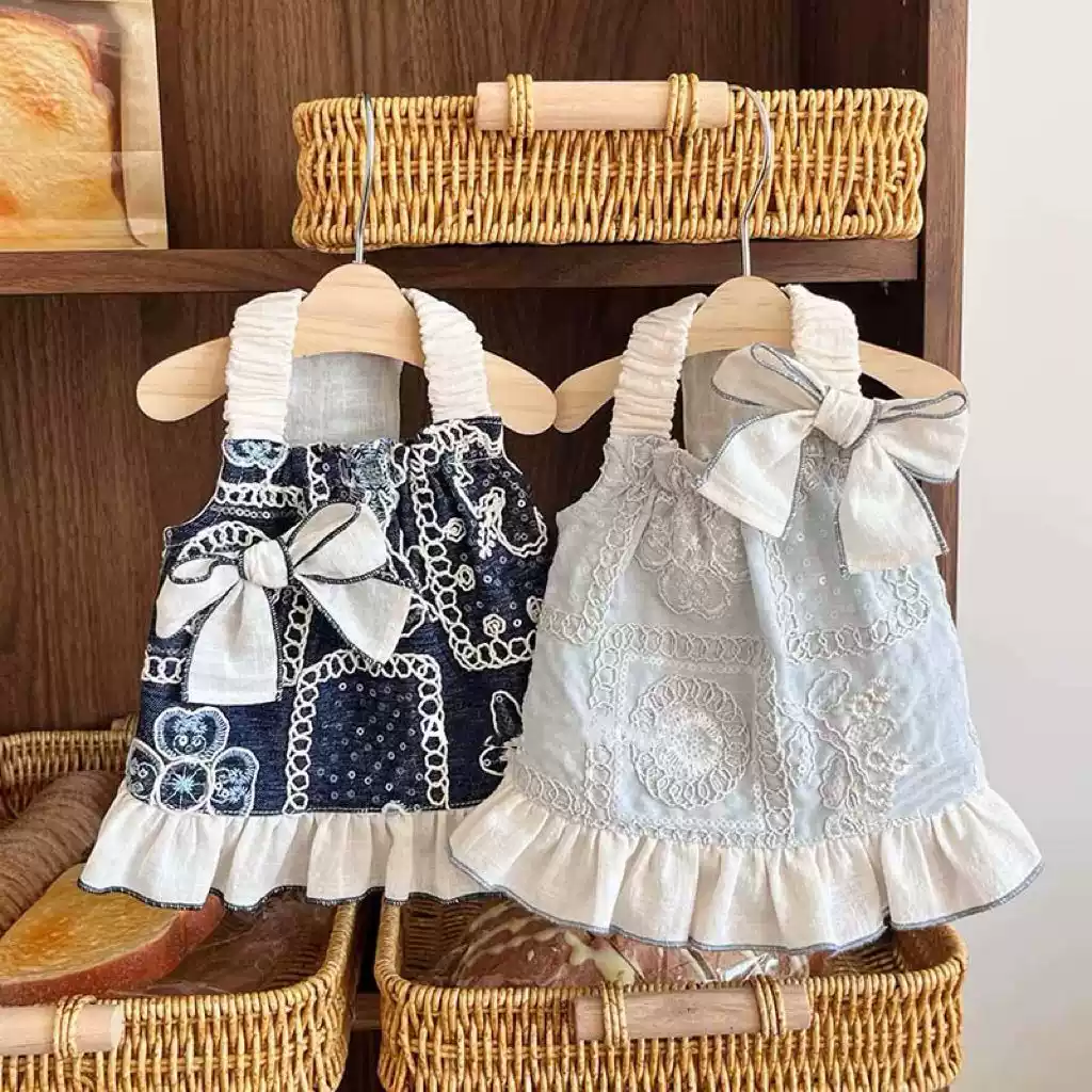 Cute All-Season Princess-Style Lace Trim Cotton Dress for Dogs & Cats