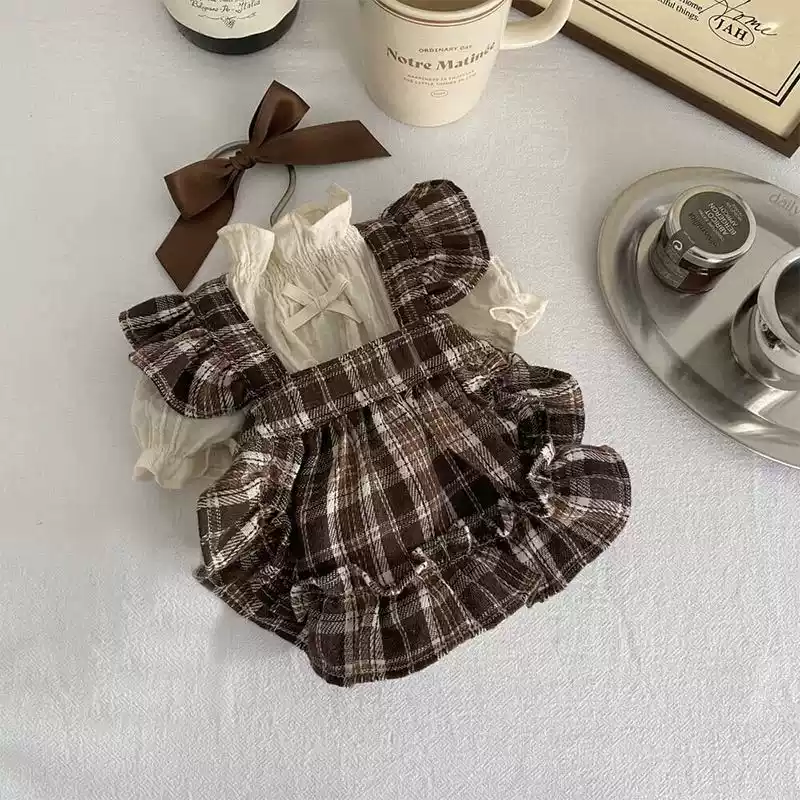 Retro Plaid Bow Princess Dress for Small to Medium Dogs