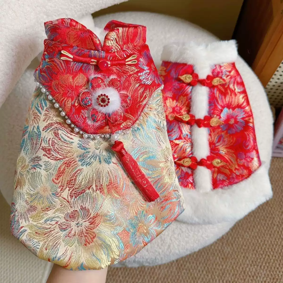 New Year Festive Tang-Style Pet Outfit - Autumn & Winter for Dogs & Cats