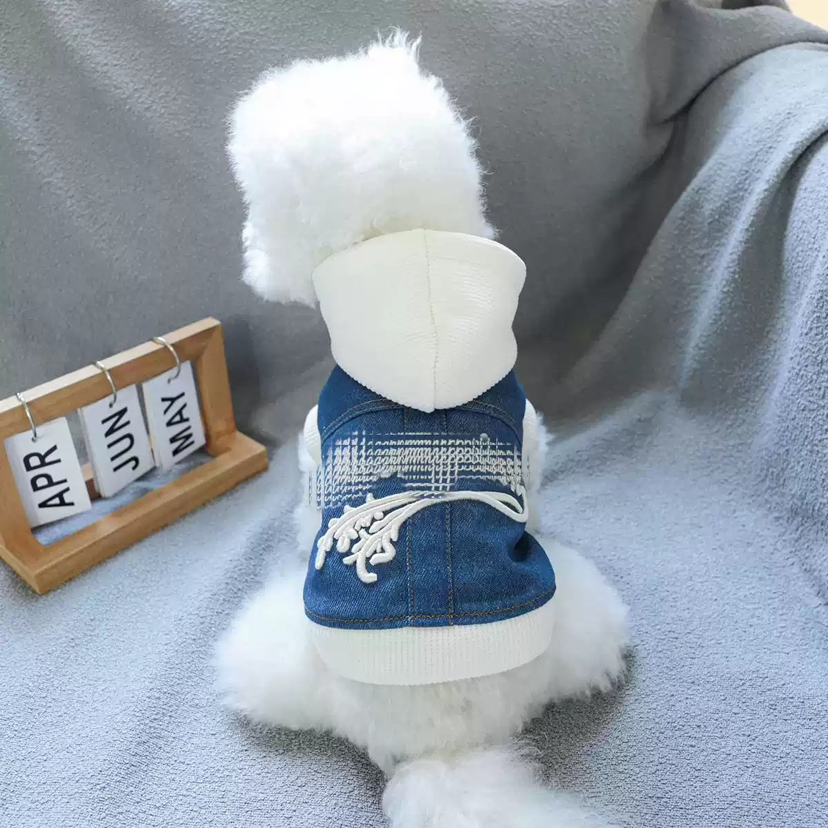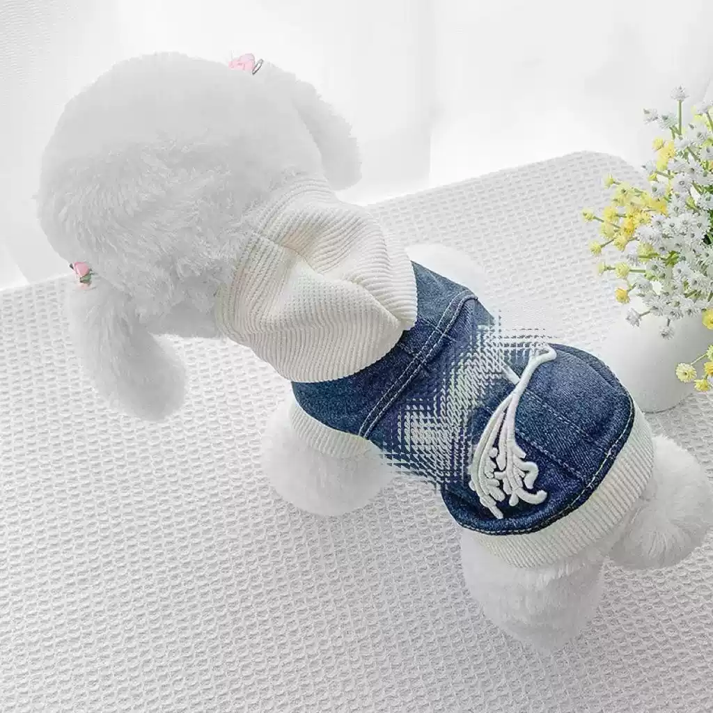 Dog & Cat Denim Vest, Leash-Compatible, Autumn/Winter Style for Small Pets