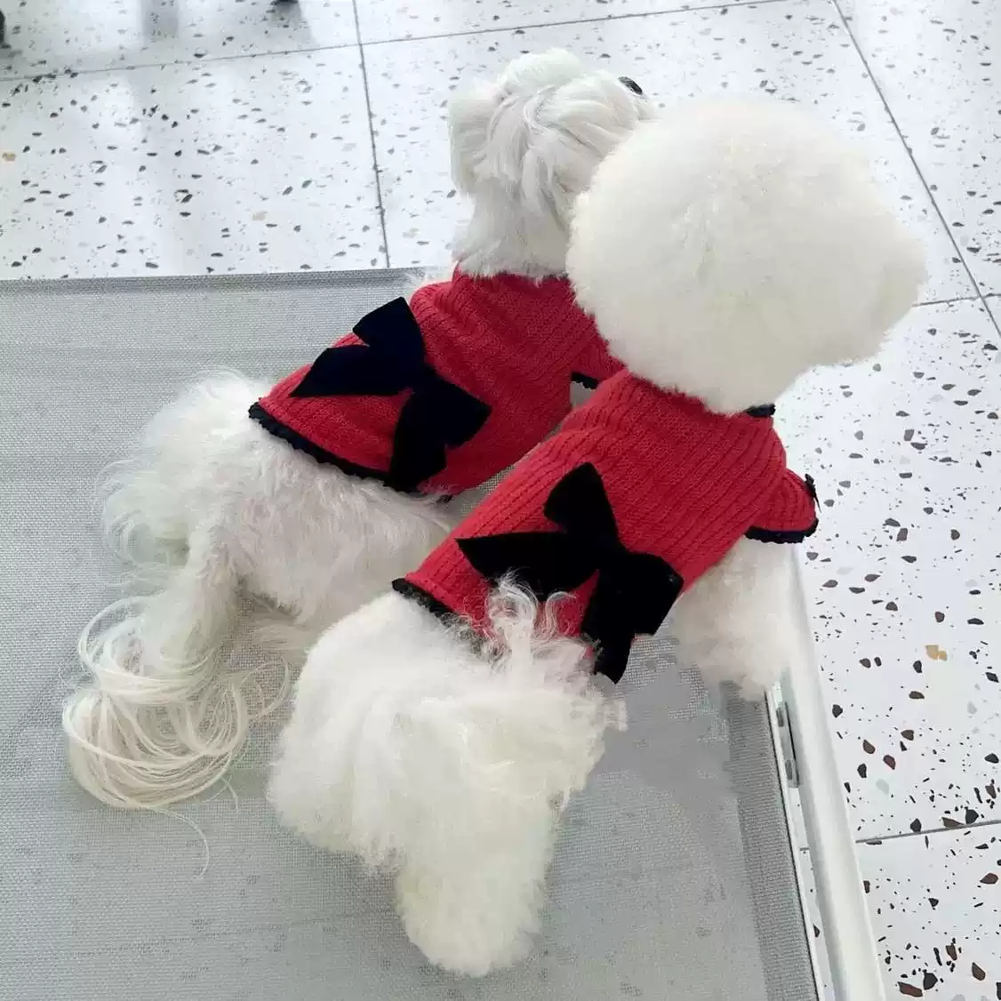 Pet Knitted Sweater with Big Bow & Puff Sleeves - Christmas & New Year Outfit for Small Dogs & Cats