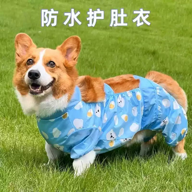 Corgi Dog Four-Legged Belly-Protective All-Season Raincoat with Waterproof Leg Covers for Anti-Dirty Rainy Days