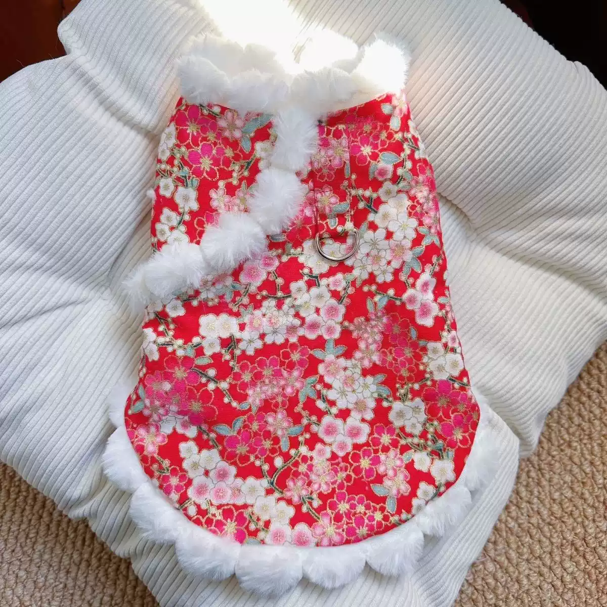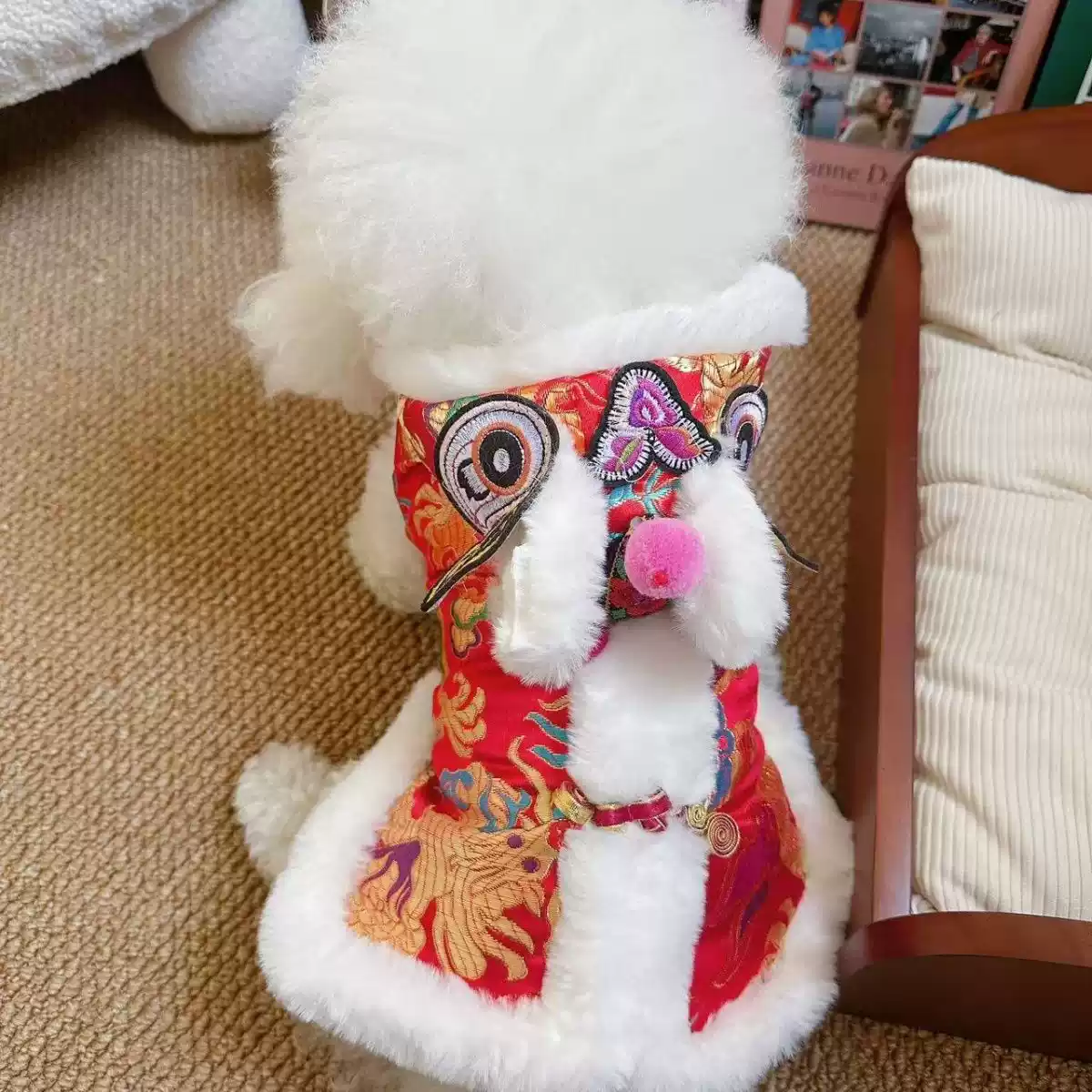 Pet Traditional Chinese Style Outfit - Autumn/Winter Warm Festive New Year Clothes for Dogs & Cats (Teddy, Bichon, etc.)