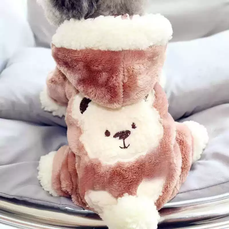 Small Dog Autumn/Winter Thickened Coral Fleece Two-Legged Outfit - Cute Outfit