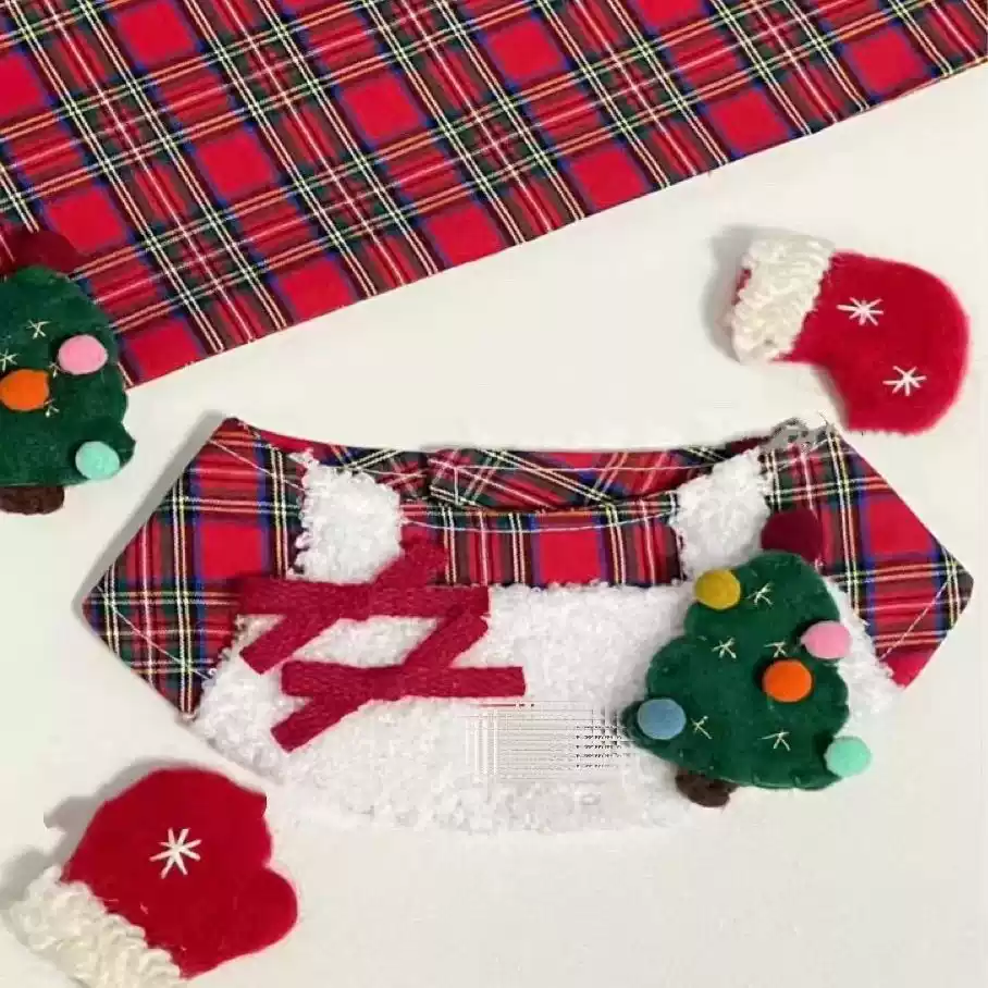 Christmas Retro English Red Check Pet Scarf for Dogs & Cats