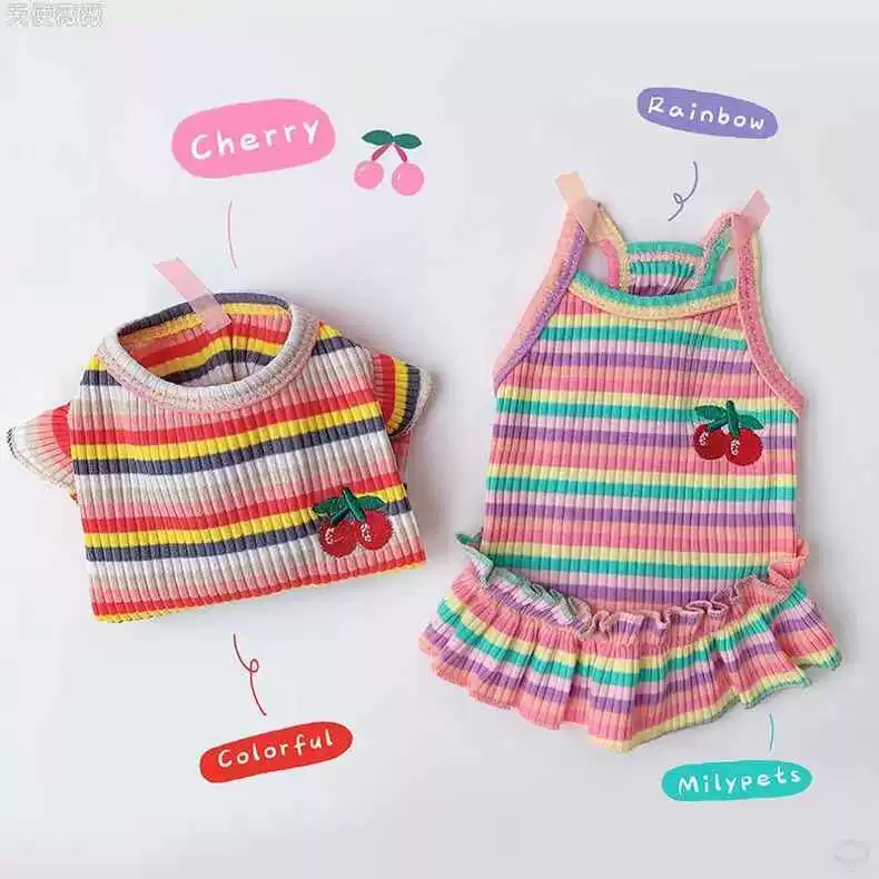 Thin Summer Striped Pet Dress - Sleeveless T-Shirt for Dogs & Cats