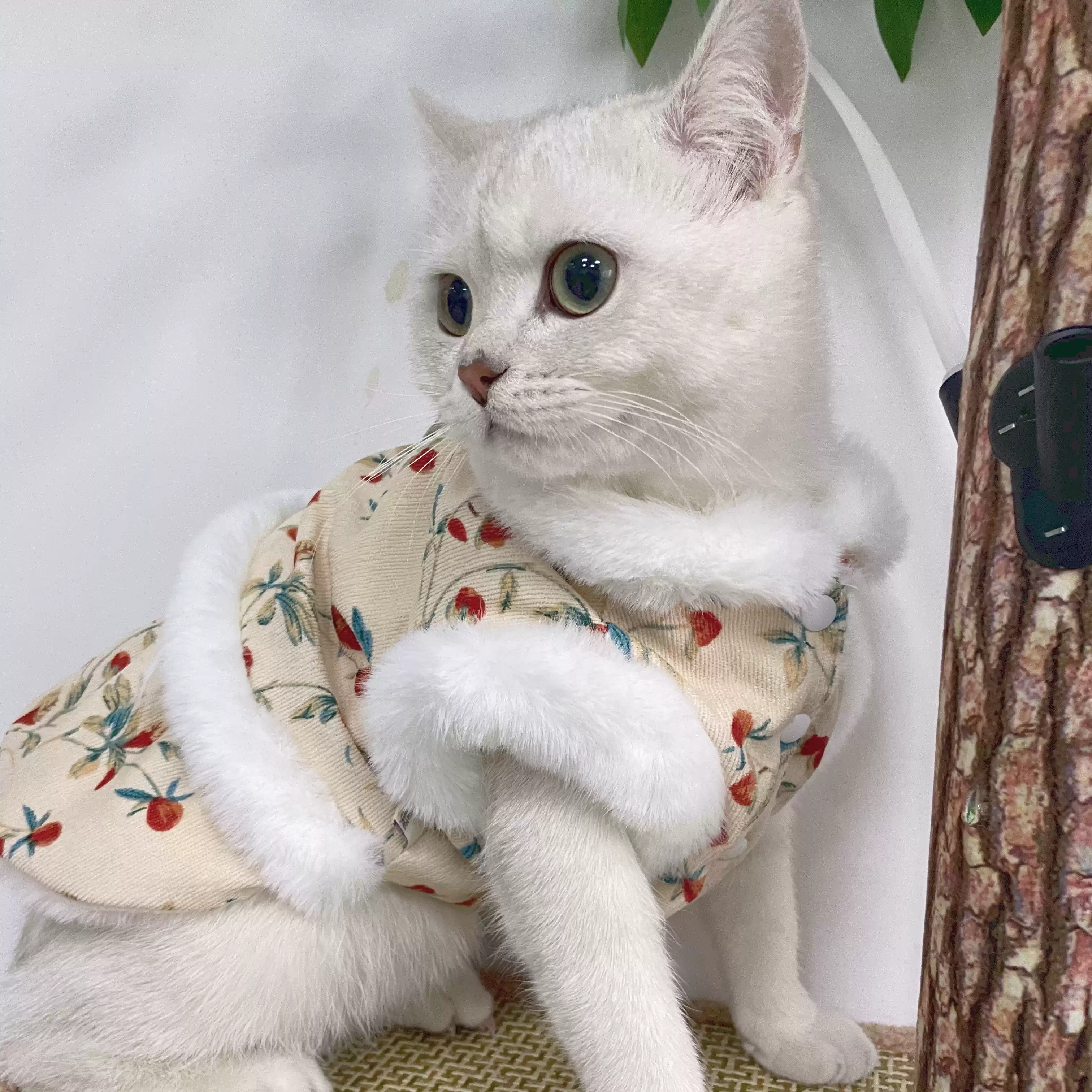 New Autumn/Winter Fleece-Lined Floral New Year Dress for Dogs & Cats (Leash-Compatible)