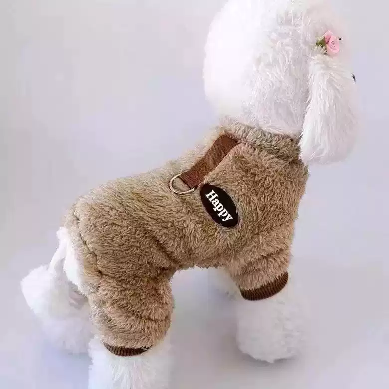 Autumn/Winter Thickened Four-Legged Dog Fleece Homewear with Pull Ring
