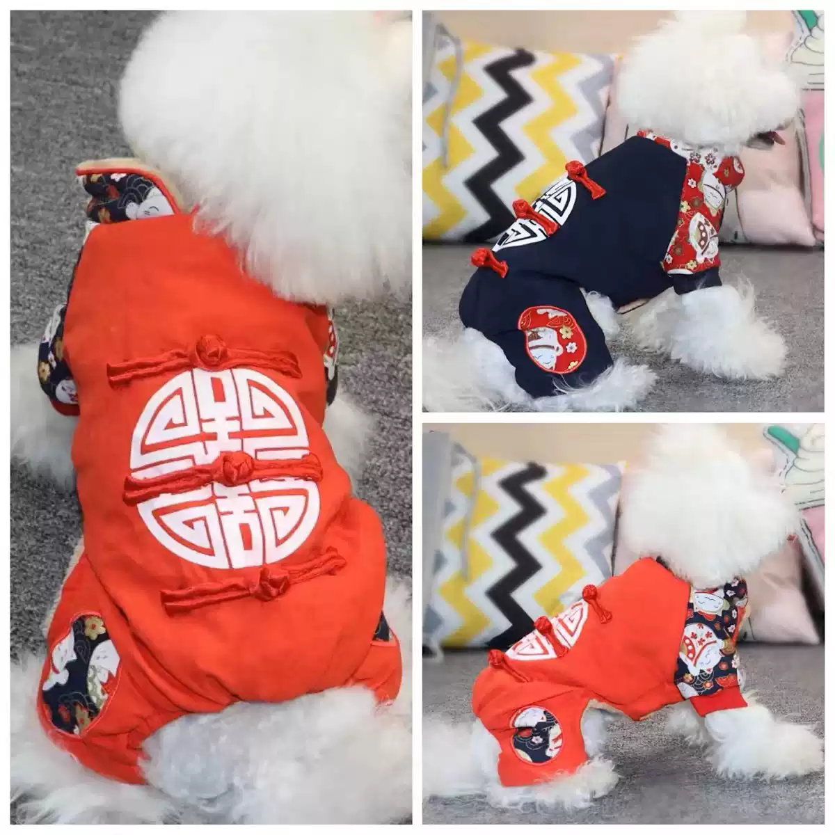Dog Autumn/Winter Tang-Style Four-Legged Cotton Outfit