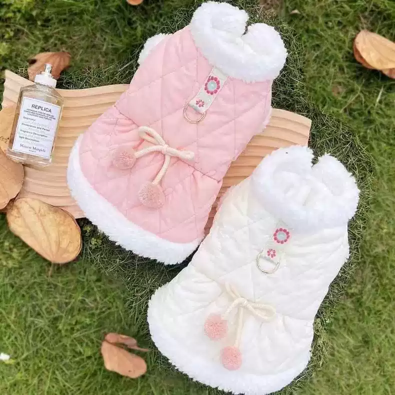 Fleece-Lined Pet Jacket with Leash Clip, Warm Cotton Coat for Small Dogs and Cats (Winter/Autumn)