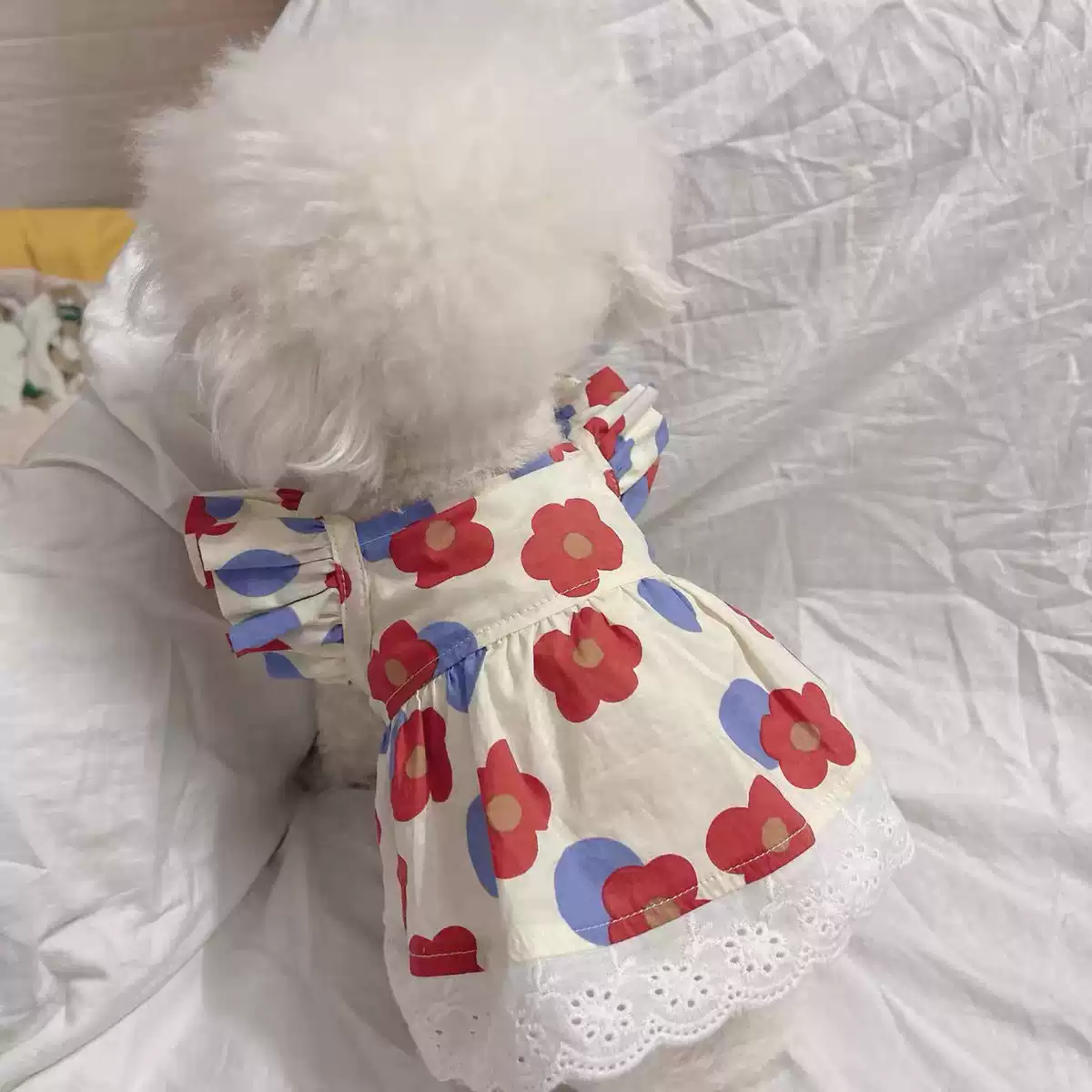 Floral Ruffled Sleeve Summer Dress for Small Dogs & Cats