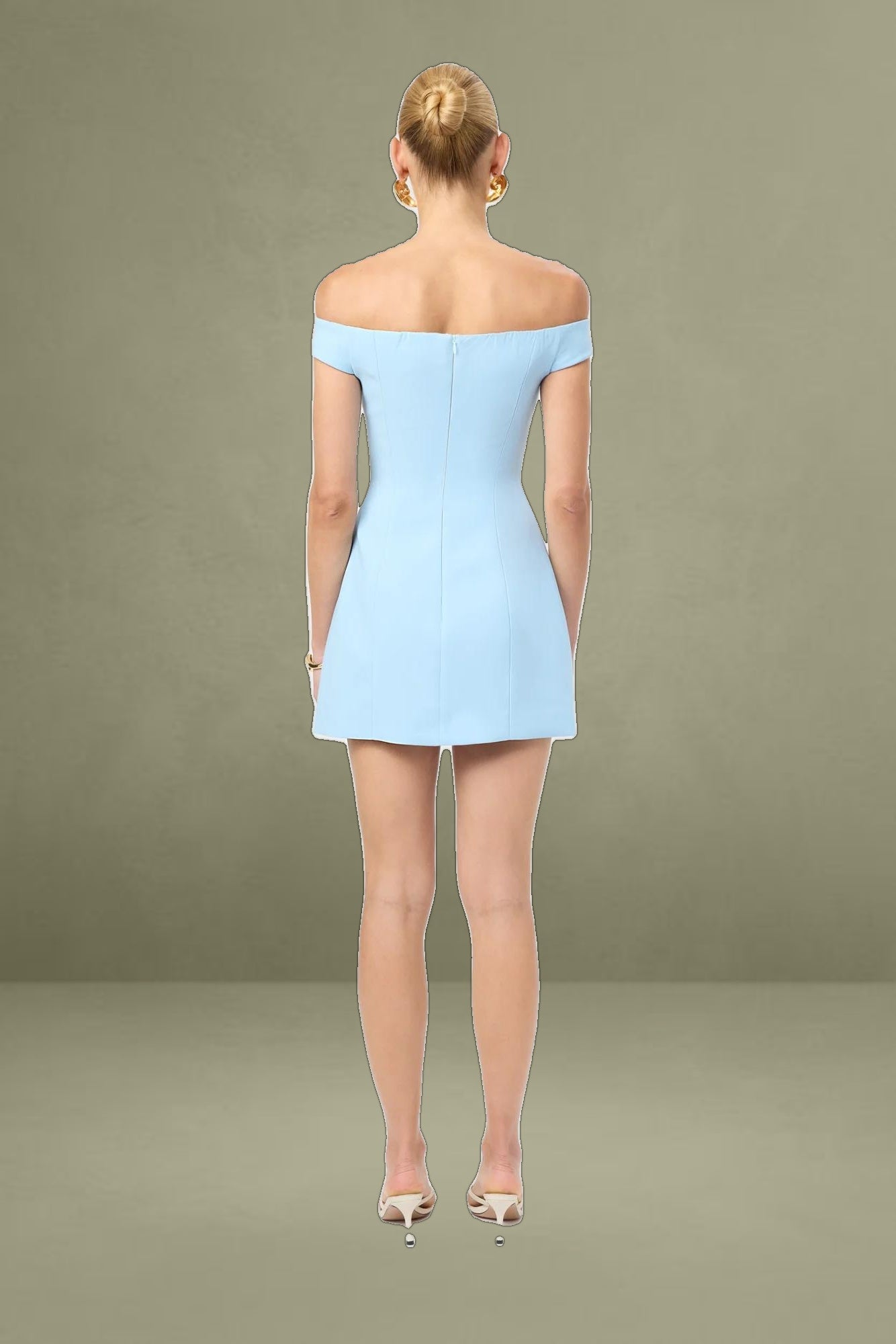 The Alto Off-Shoulder Dress is a modern take on classic elegance. This baby blue mini dress features a structured fit-and-flare silhouette, crafted from the luxurious Alto fabrication. The off-shoulder neckline adds a touch of femininity and sophistication.