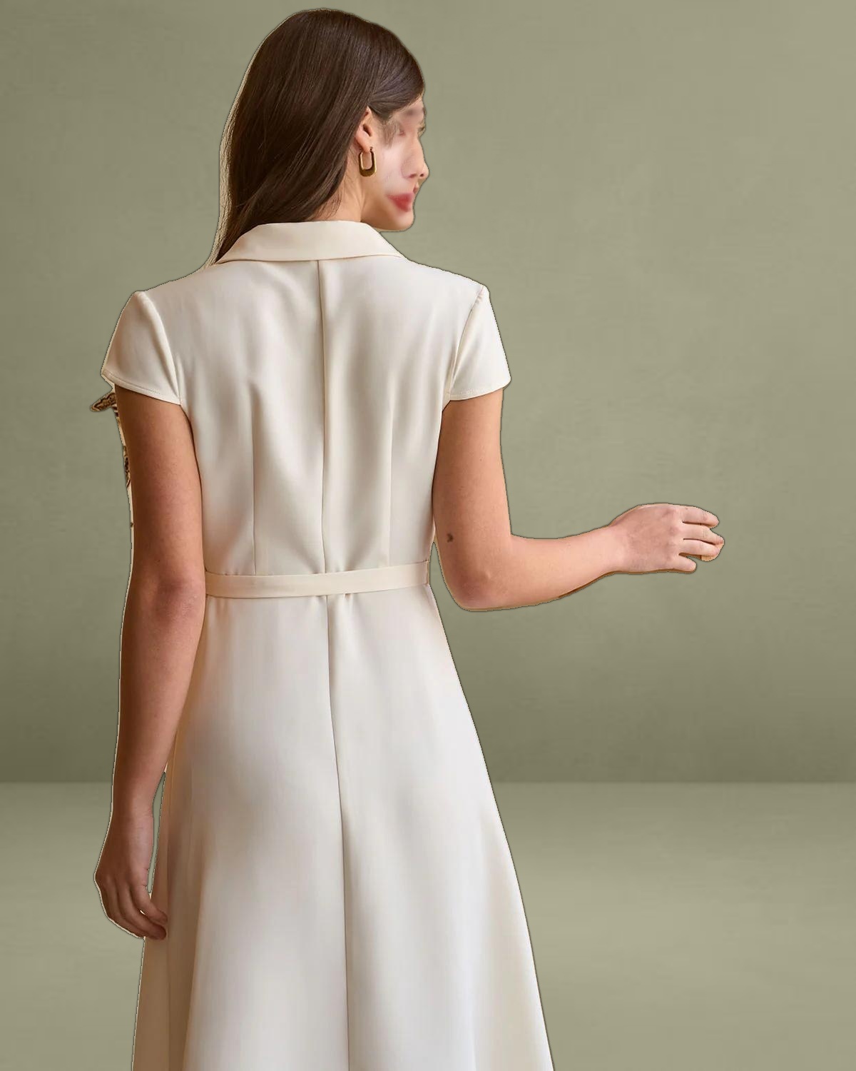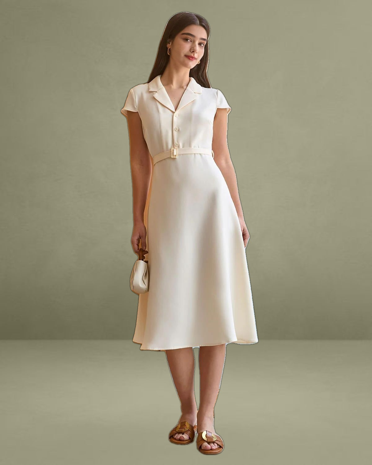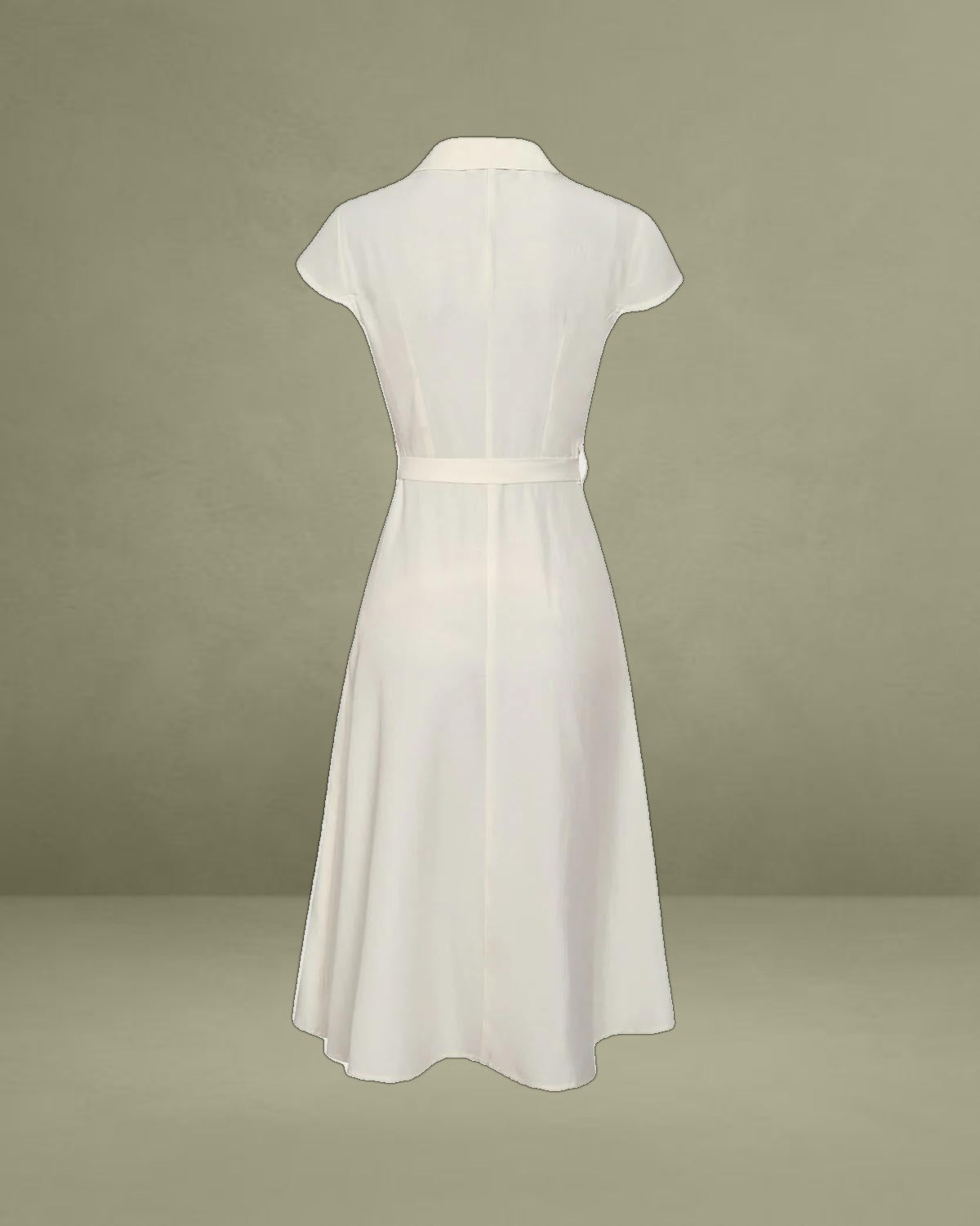 This Short Sleeve Midi Dress is an ideal option for any event. The sashes, A-Line shape, and high-waisted design bring a sense of movement and fluidity, making it comfortable to wear. The cap sleeves and button design add a feminine charm, making this dress suitable for various occasions. Whether you're going on a date or attending a formal gathering, this dress is bound to attract attention and make you feel wonderful.