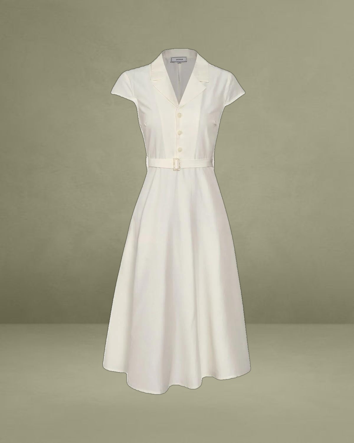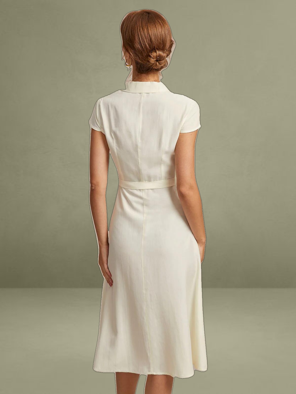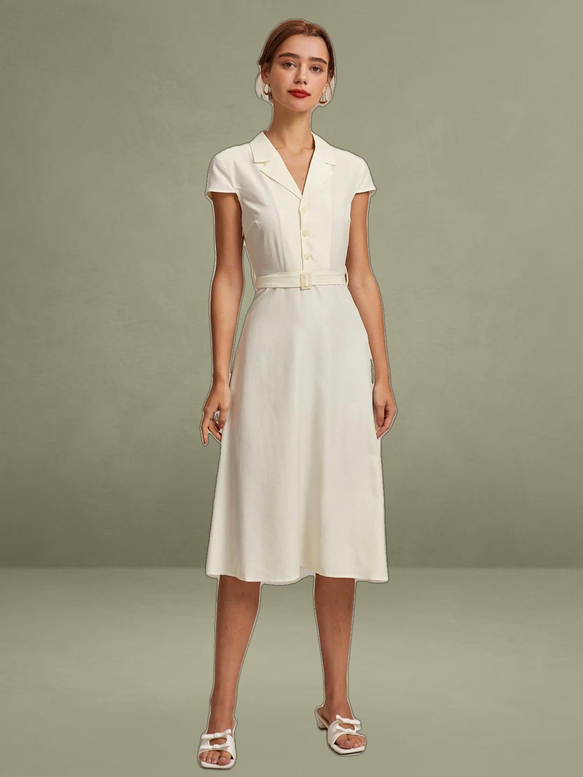 This Short Sleeve Midi Dress is an ideal option for any event. The sashes, A-Line shape, and high-waisted design bring a sense of movement and fluidity, making it comfortable to wear. The cap sleeves and button design add a feminine charm, making this dress suitable for various occasions. Whether you're going on a date or attending a formal gathering, this dress is bound to attract attention and make you feel wonderful.