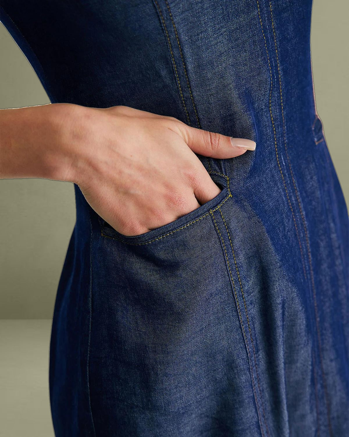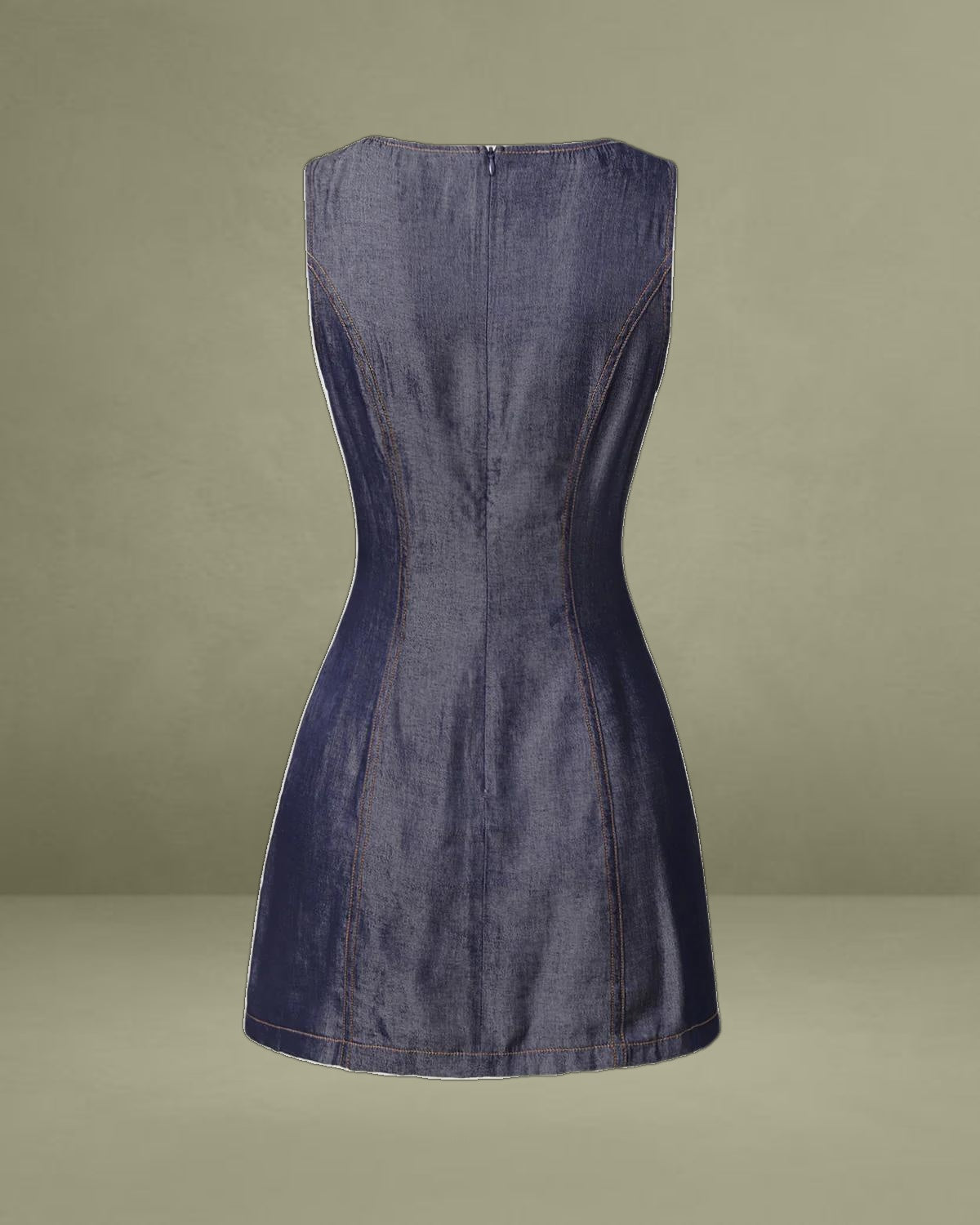 Stay stylish and practical with this breezy blue mini dress. The sleeveless design and handy pockets make it a must-have for casual days.