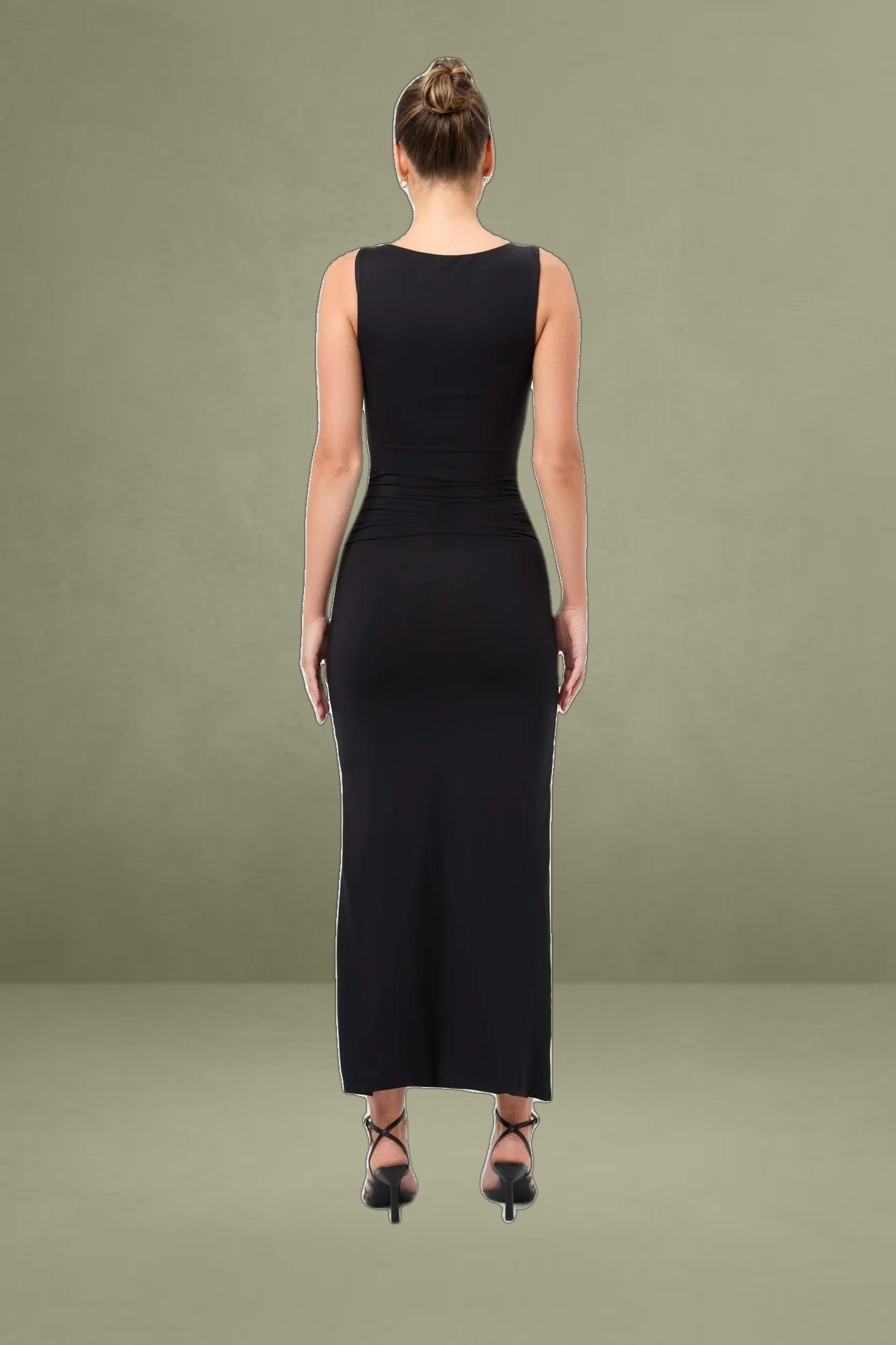 The Estelle Midi Dress is the perfect LBD (Long Black Dress). Crafted from our signature Polyamide fabrication, this elongating midi style exudes a sleek and fitted silhouette. The tank-style design features rouching at the midline for a flattering look and comfortable feel.